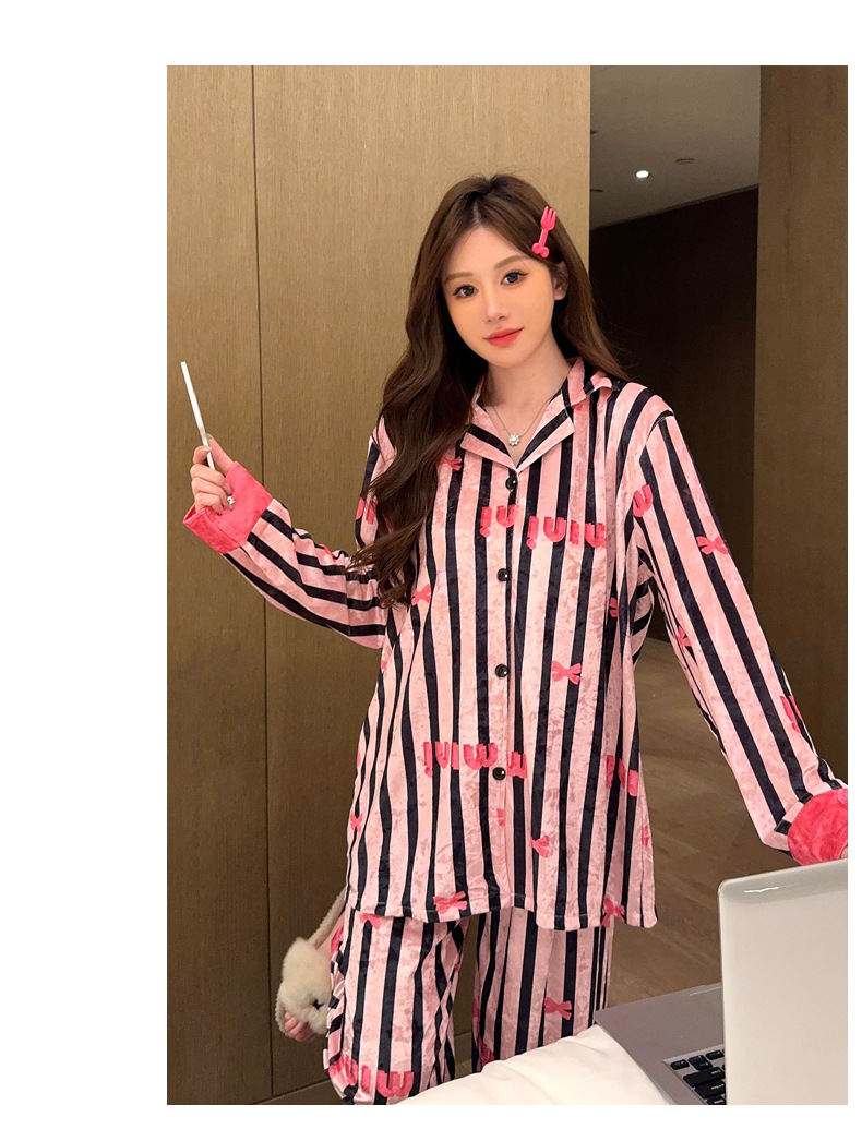 가을/겨울 새로운 골드 벨벳 잠옷 여성 긴팔 바지 세트 홈 의류 하이 엔드 센스 그물 레드 라이브 공장 도매