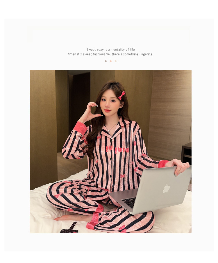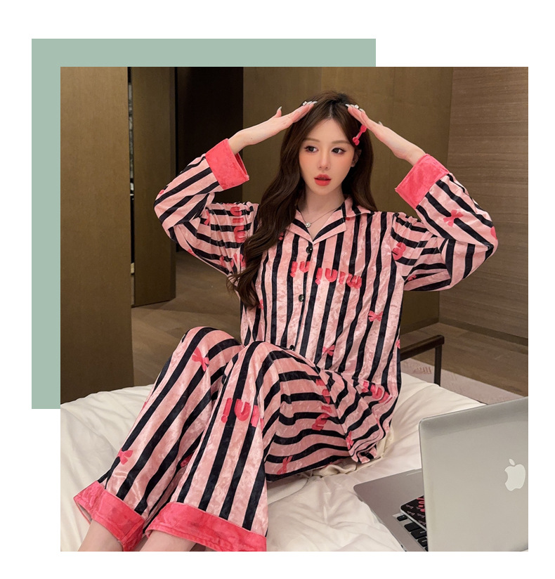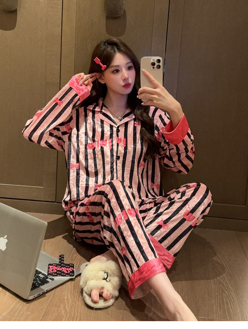 가을/겨울 새로운 골드 벨벳 잠옷 여성 긴팔 바지 세트 홈 의류 하이 엔드 센스 그물 레드 라이브 공장 도매스토어 가기