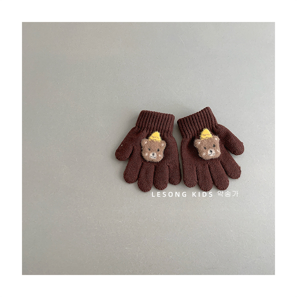 한국 스타일 귀여운 캔디 컬러 어린이 장갑 겨울 새로운 소년과 소녀 작은 동물 따뜻한 손가락 양모 다섯 손가락 세트