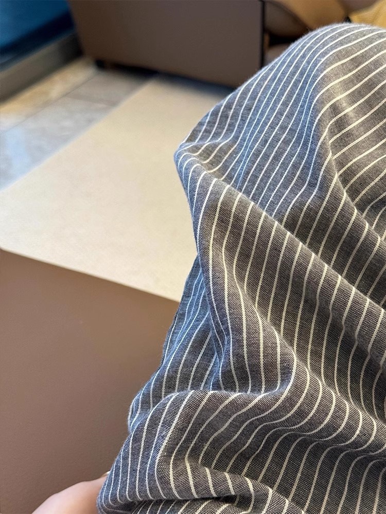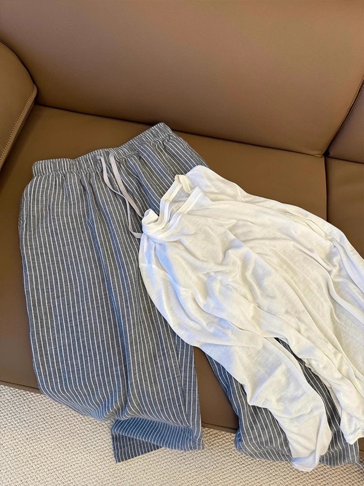CHAO 클래스 추천! 너무 편안한 ~ 회색 스트라이프 코튼 팬츠 작은 다리 스트레이트 드로스트링 캐주얼 바지스토어 가기