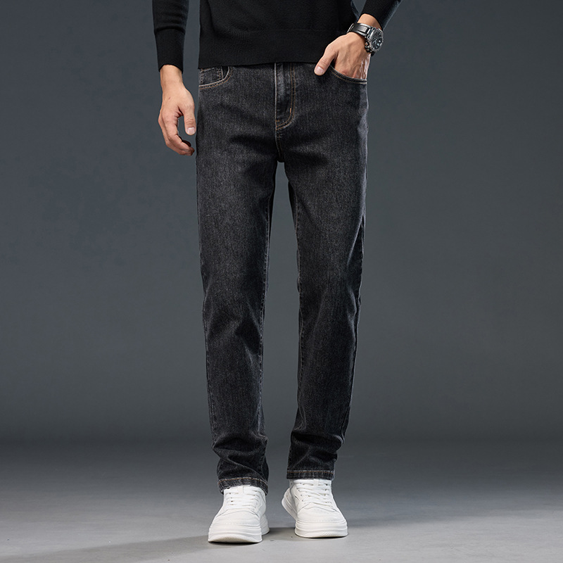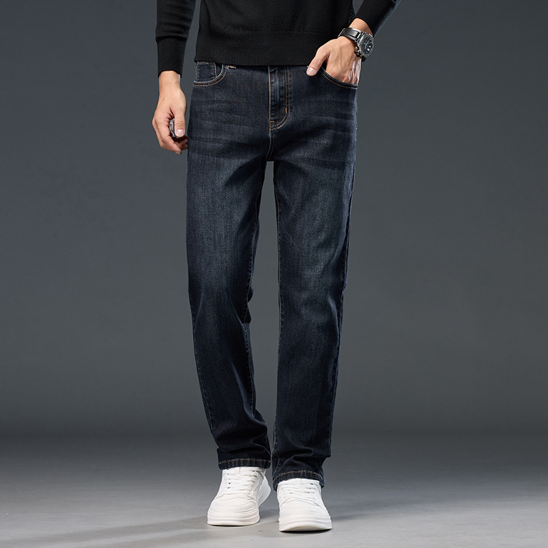 청바지 남자의 가을과 겨울 두꺼운 느슨한 스트레이트 스트레치 편안한 캐주얼 청소년 바지 유행 새로운 중간 허리 남자 바지스토어 가기