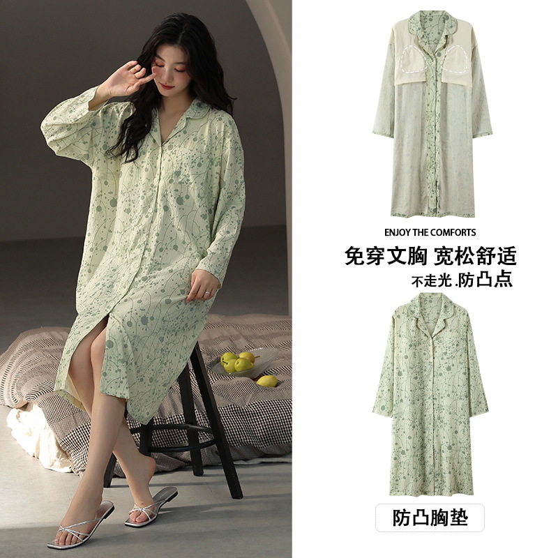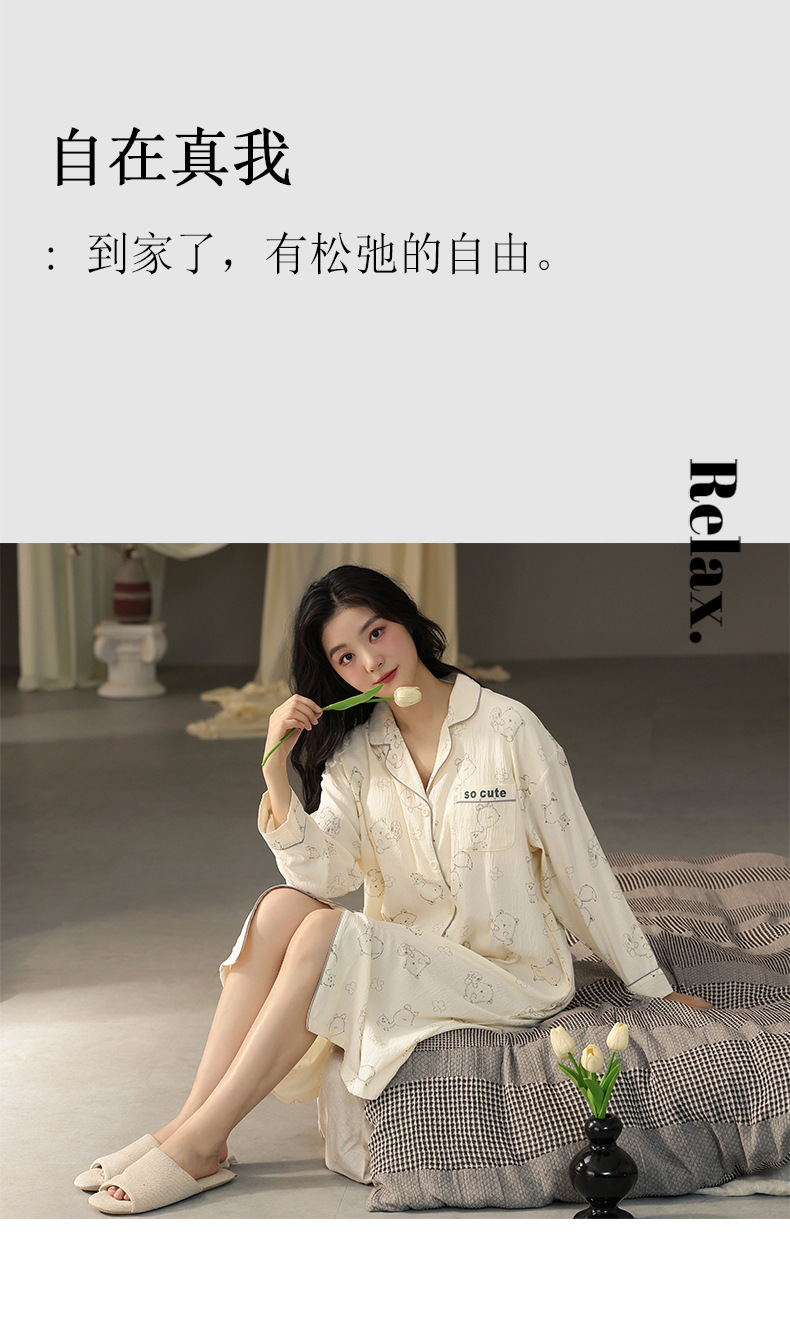 크라우드 코튼 파자마 여성용 가을 및 겨울 새로운 긴 소매 카디건 나이트 드레스 여성용 캐주얼 홈 의류스토어 가기