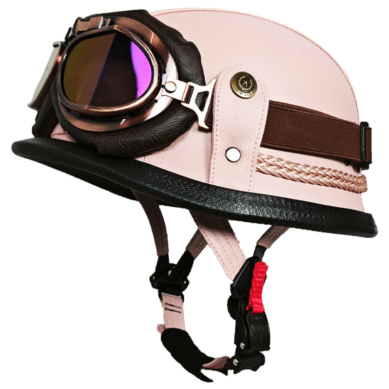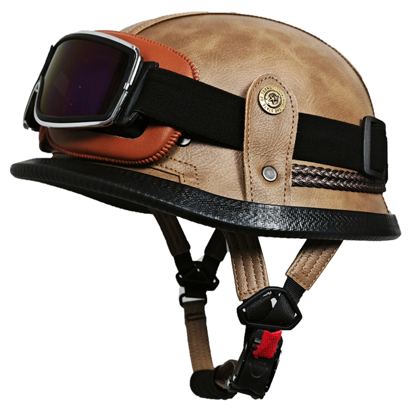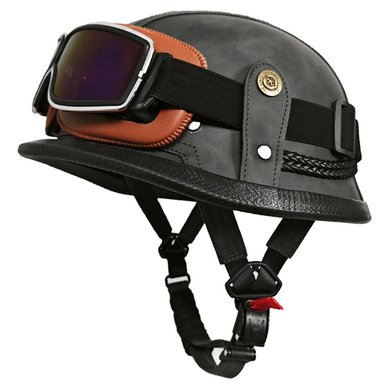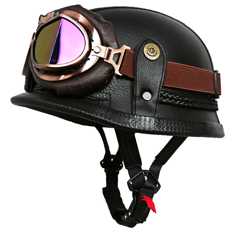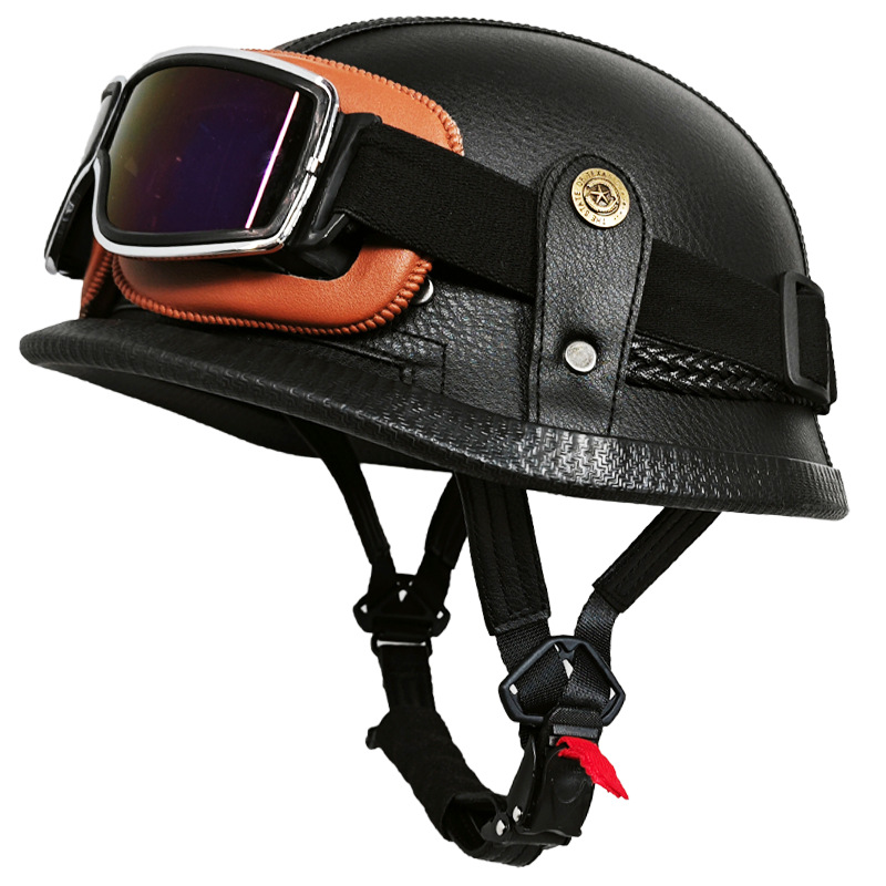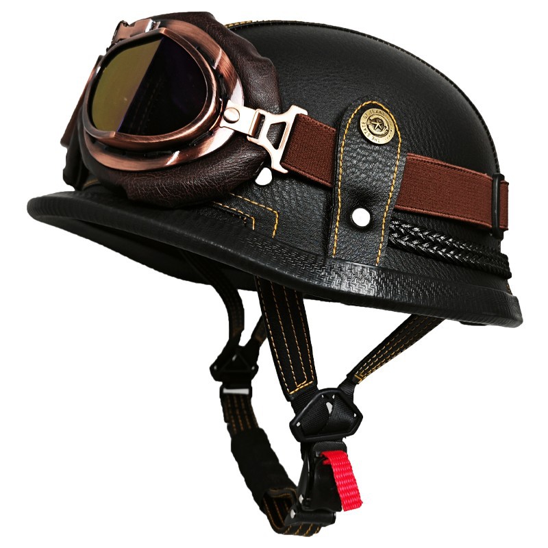 국경을 넘는 전문 공급업체 OKCMC 독일식 수제 가죽 헬멧 남녀 공용 사계절 반헬멧 전기차 헬멧 레트로 스틸 헬멧