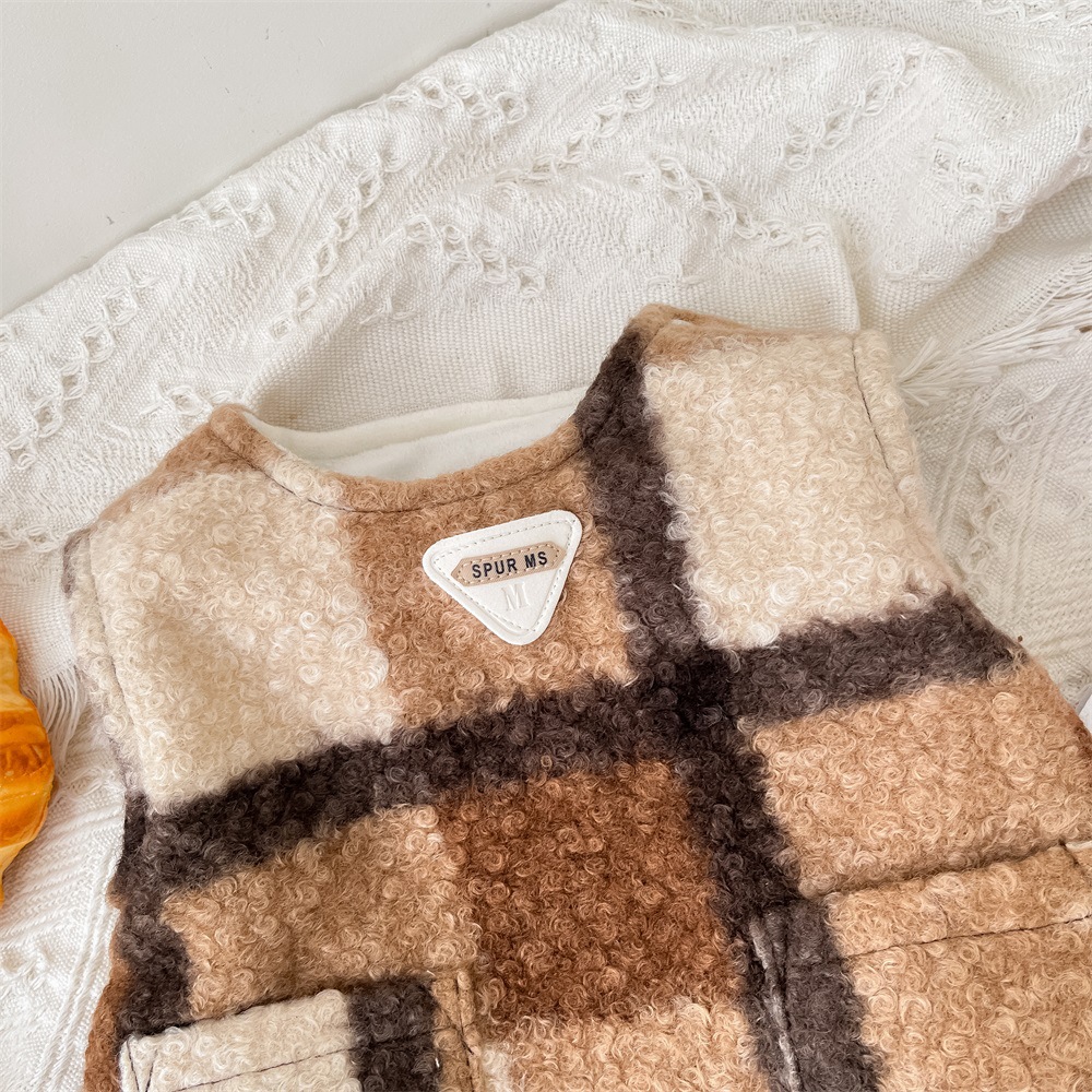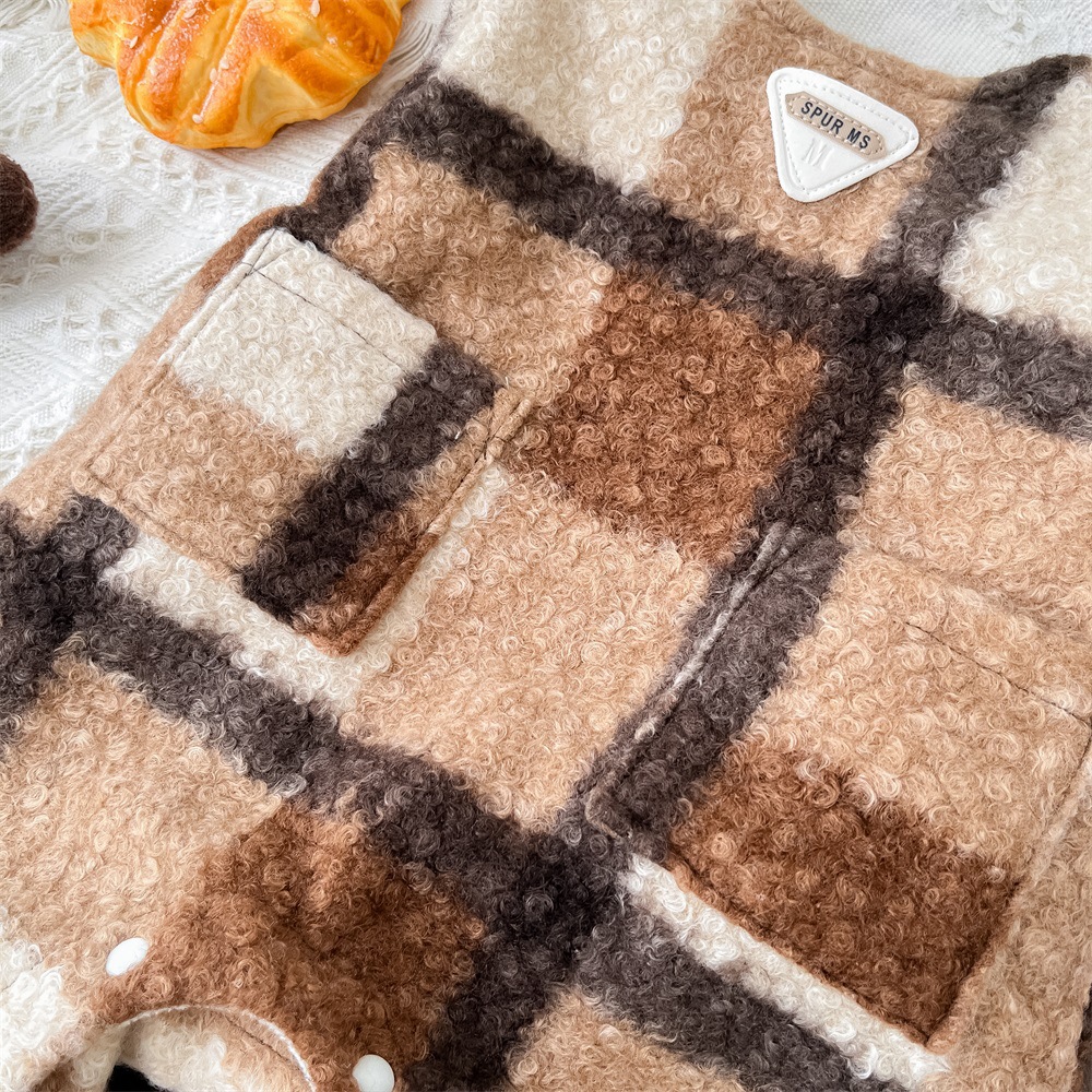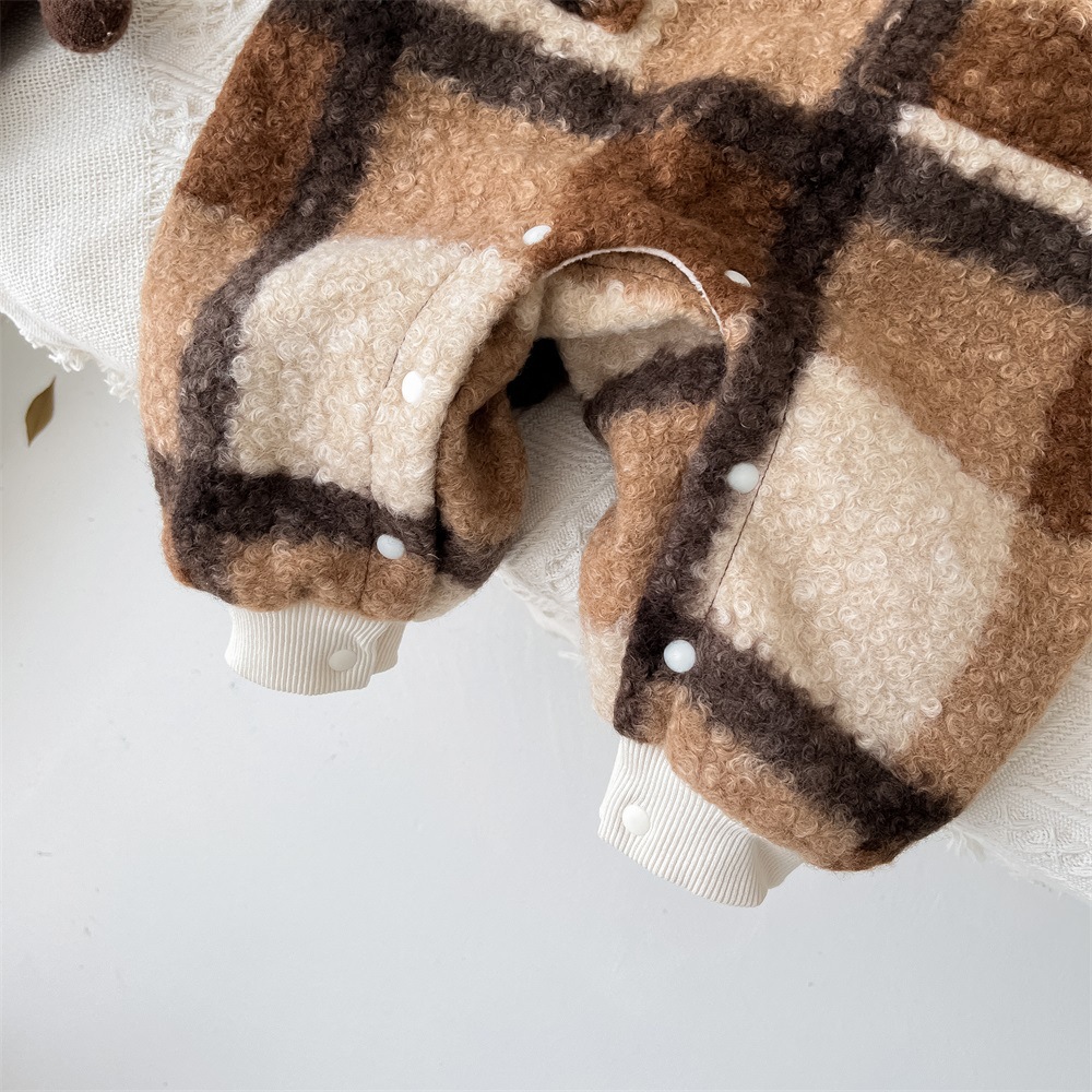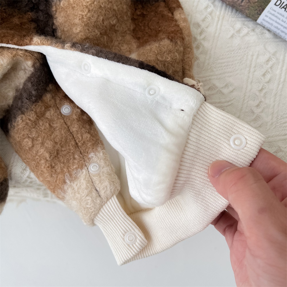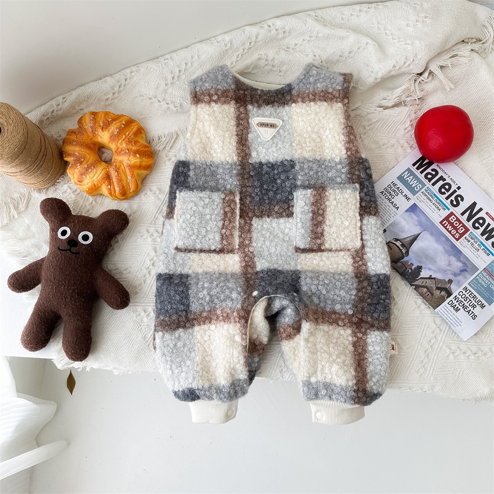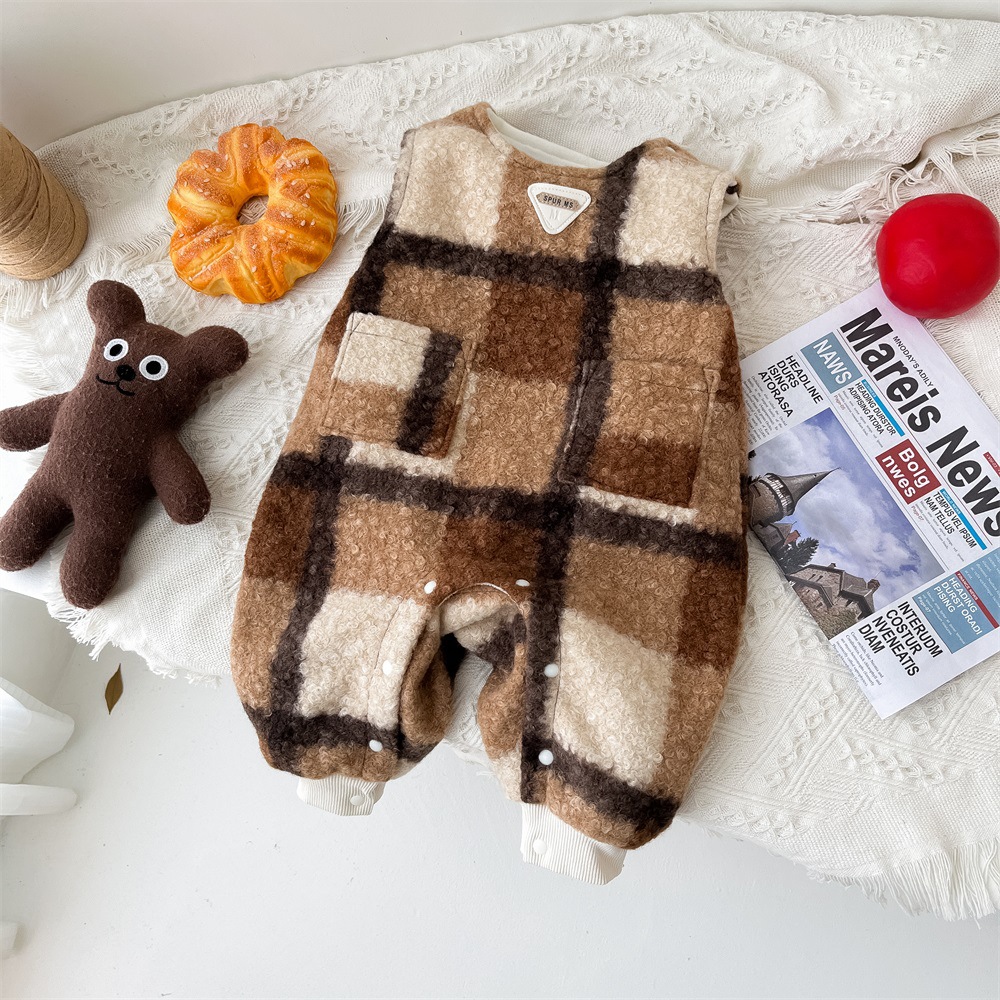 2025년 늦가을 아기복 세트 한국 스타일 레트로 체크 플러스 벨벳 롬퍼 투피스 세트 아기 초겨울 원피스 세트스토어 가기