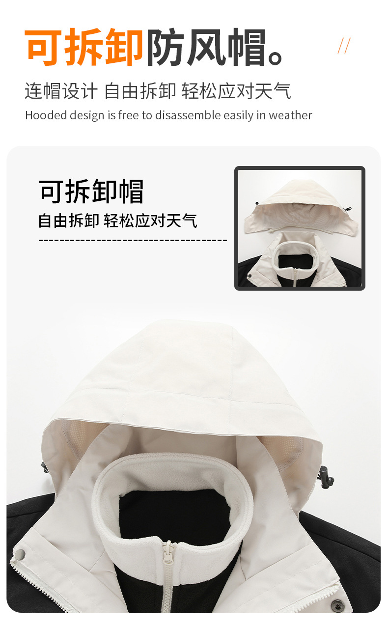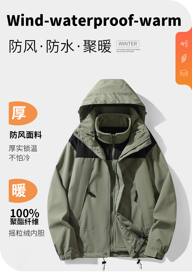 남자와 여자의 재킷 가을 겨울 두꺼운 3 대 1 이동식 방수 방풍 투피스 세트 내부 패드
