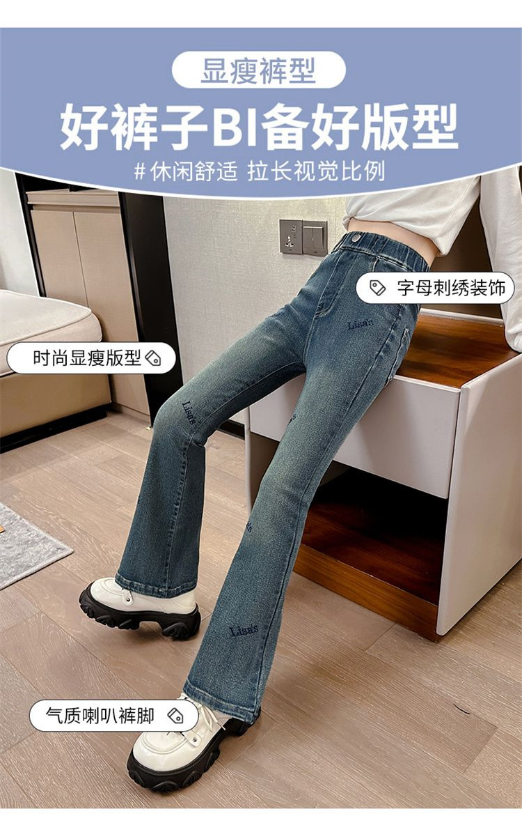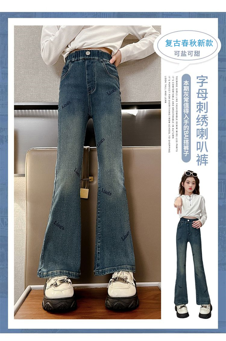2025 신상 여아 나팔바지, 봄, 가을 슬림 청바지, 아동 패션, 중대형 아동 가을 바지, 트렌디
