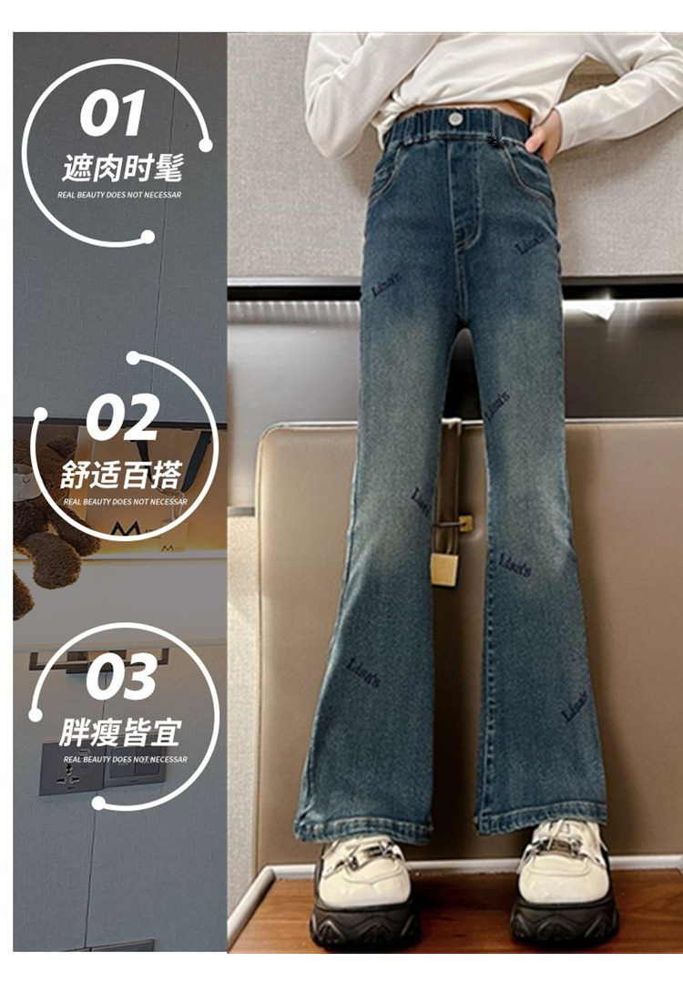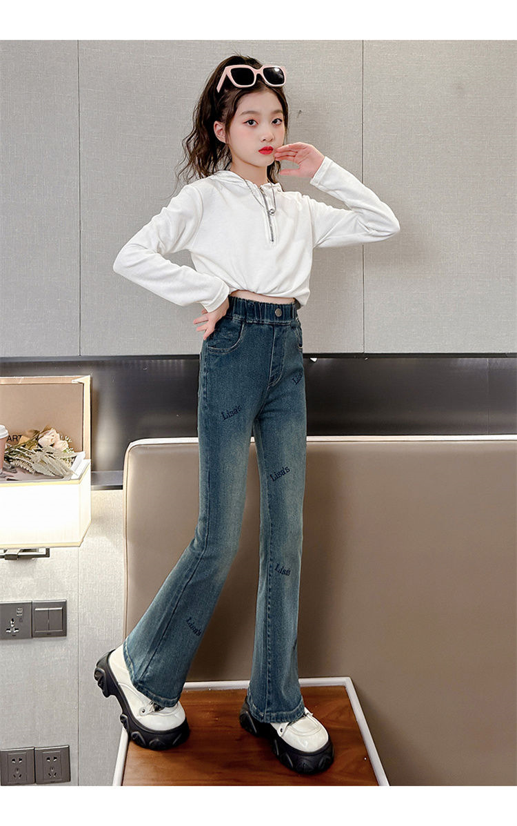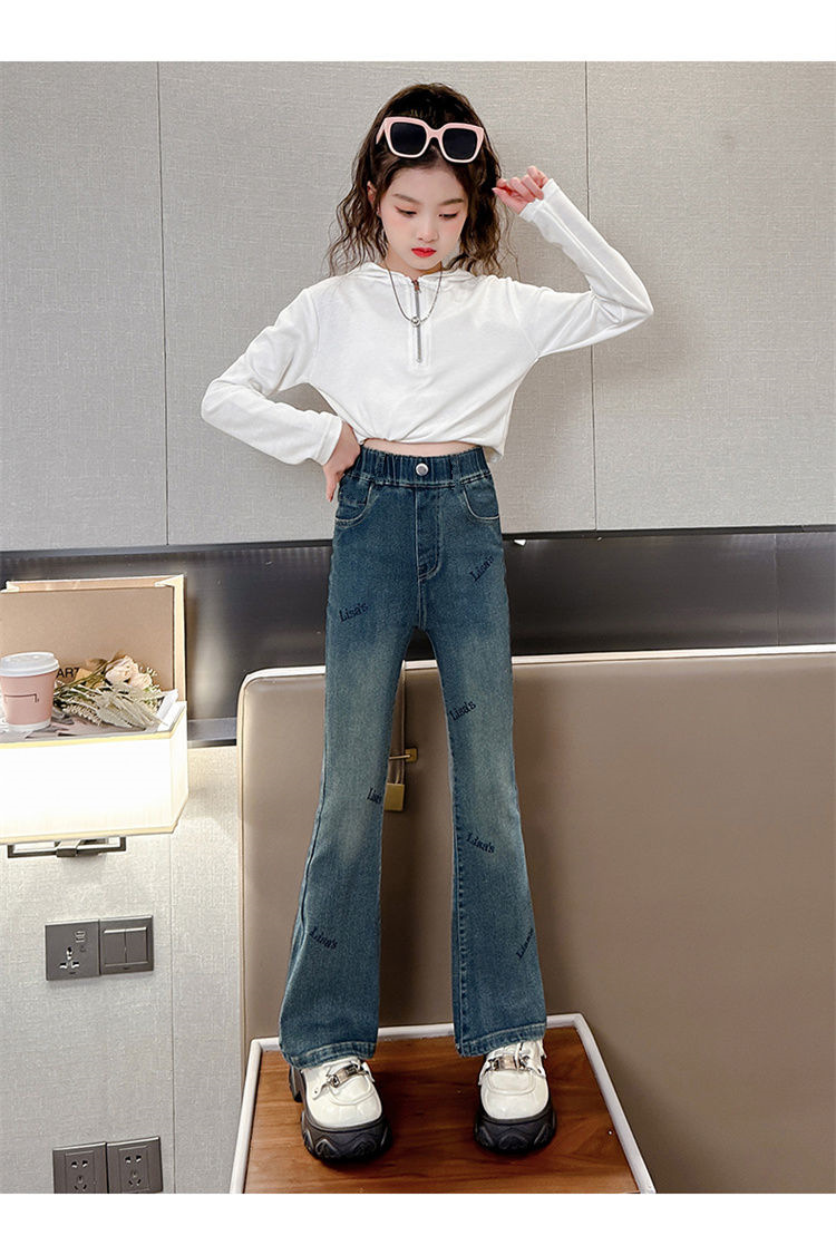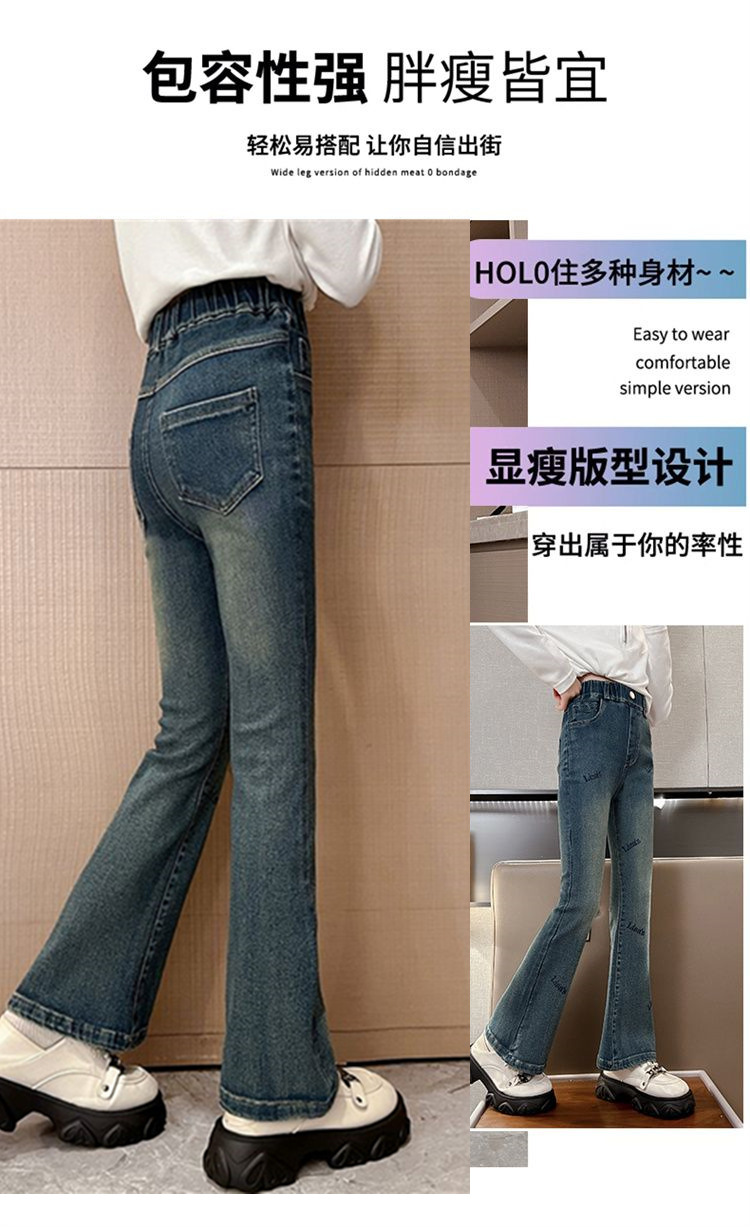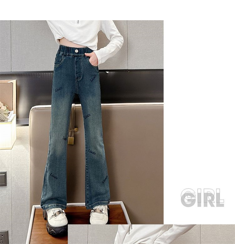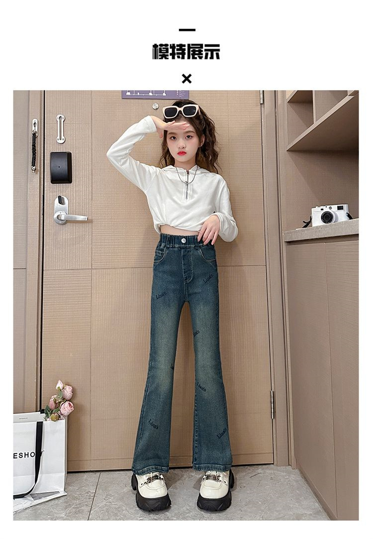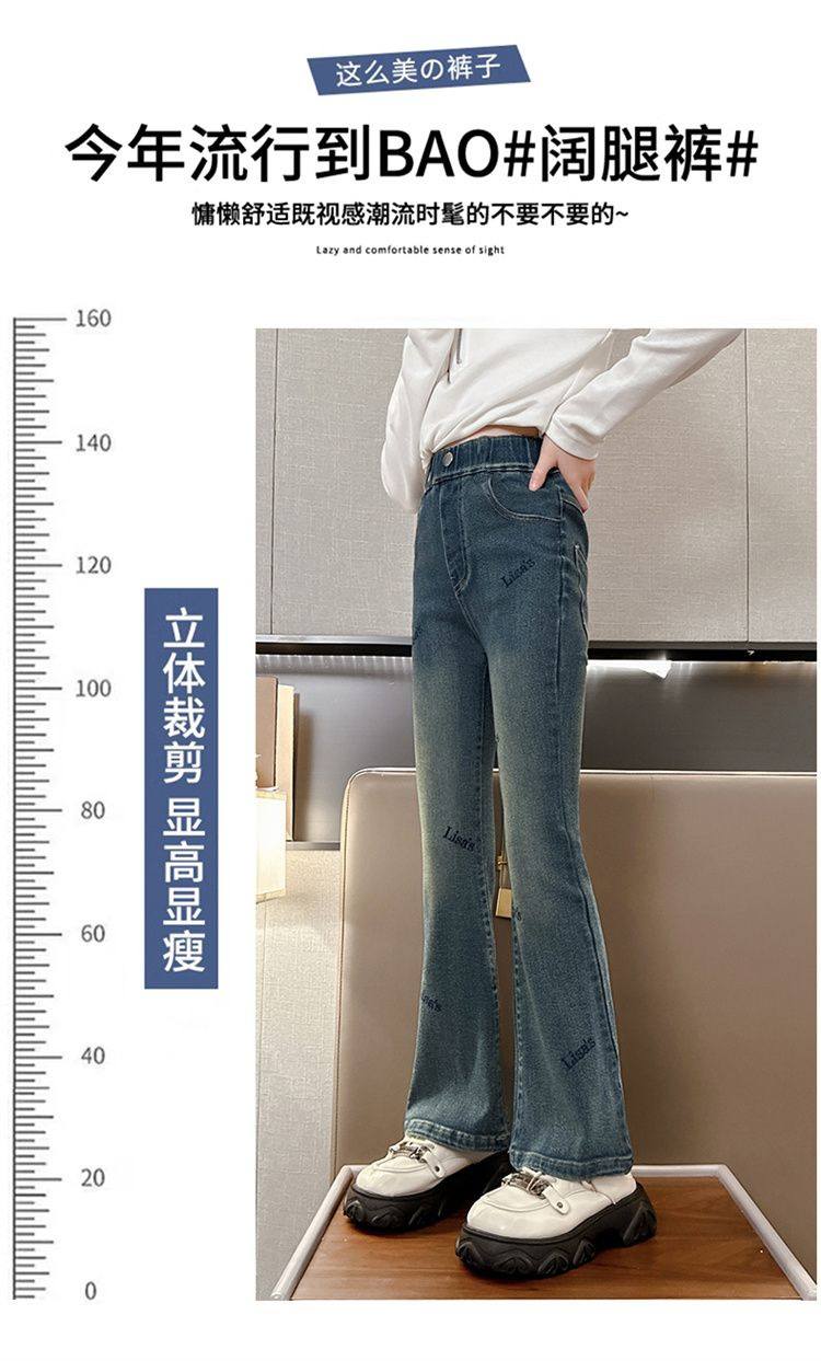 2025 신상 여아 나팔바지, 봄, 가을 슬림 청바지, 아동 패션, 중대형 아동 가을 바지, 트렌디스토어 가기