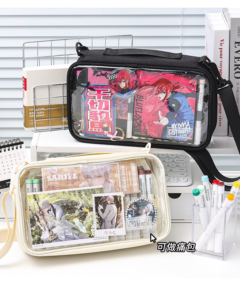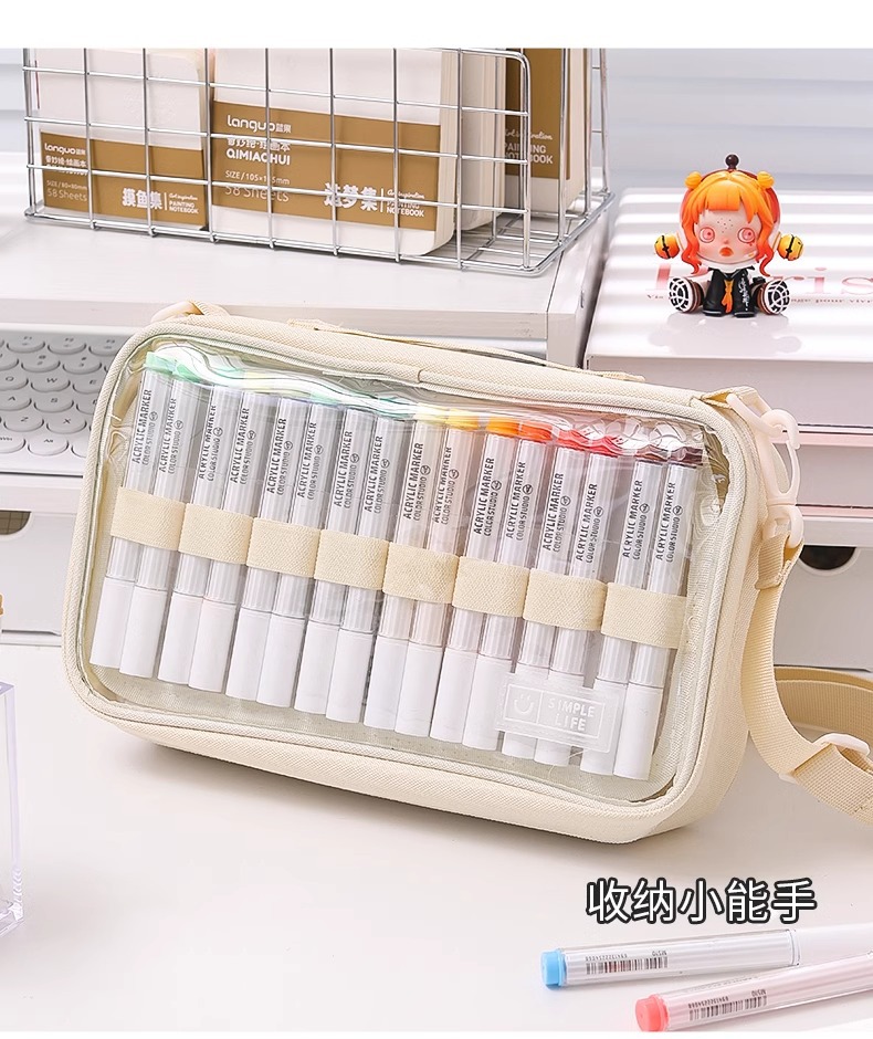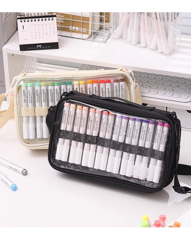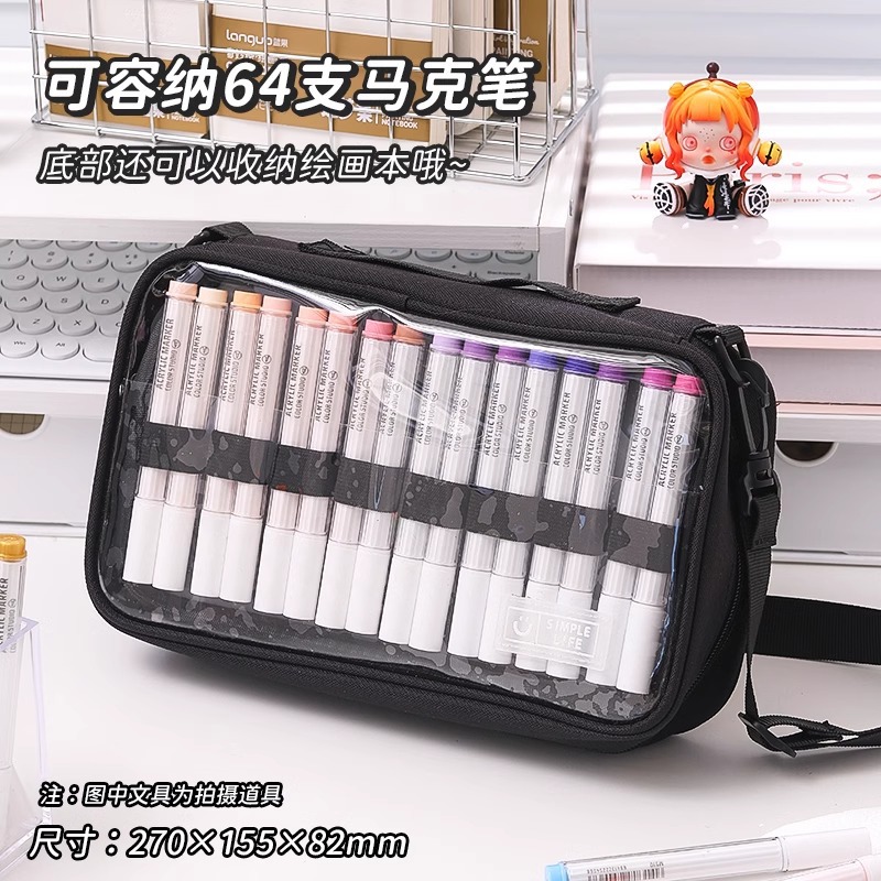 블루 과일 저장 가방 대용량 멀티 레이어 아크릴 마커 펜 저장 휴대용 크로스 바디 단일 어깨 투명 다기능 연필 케이스