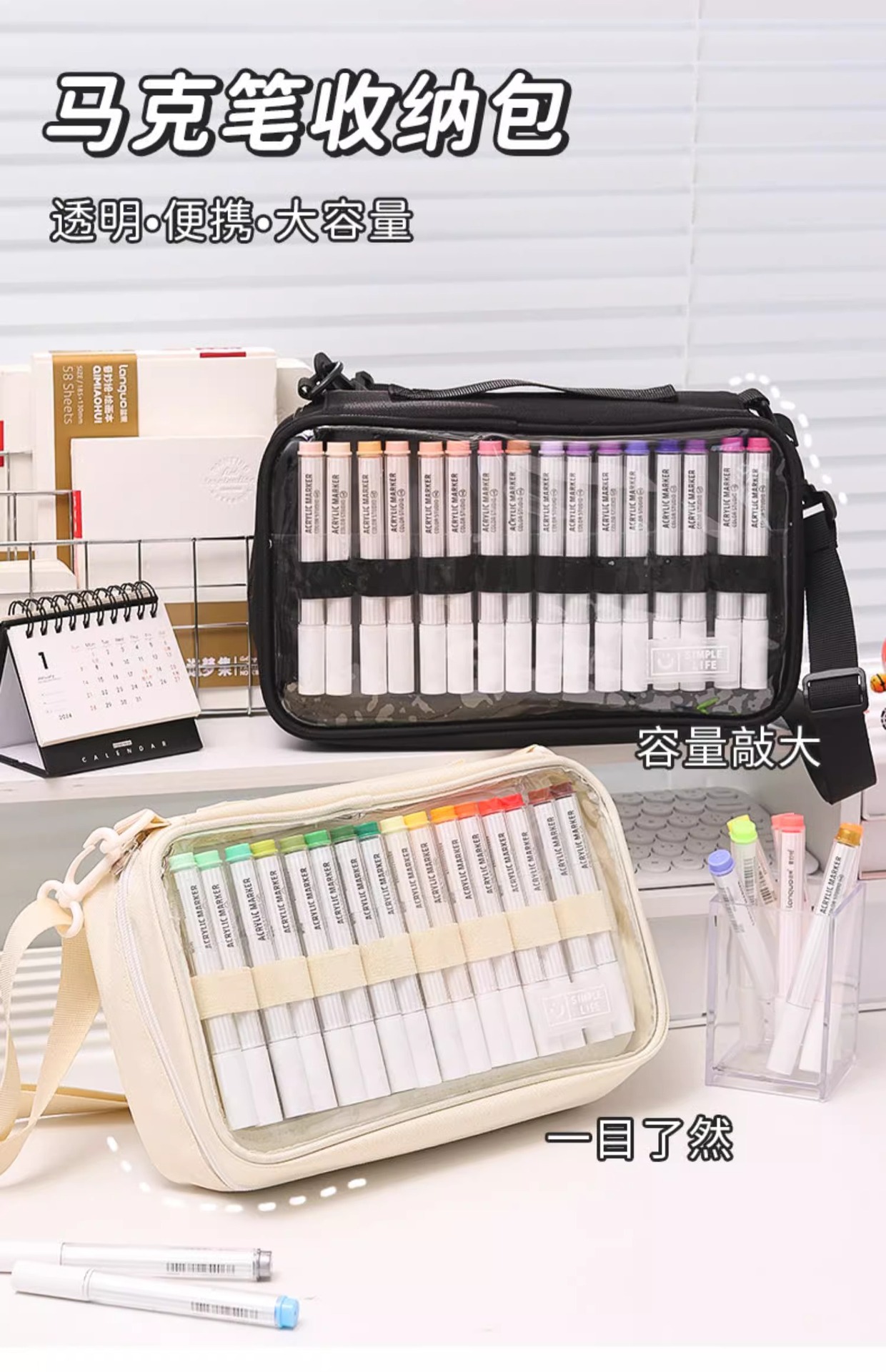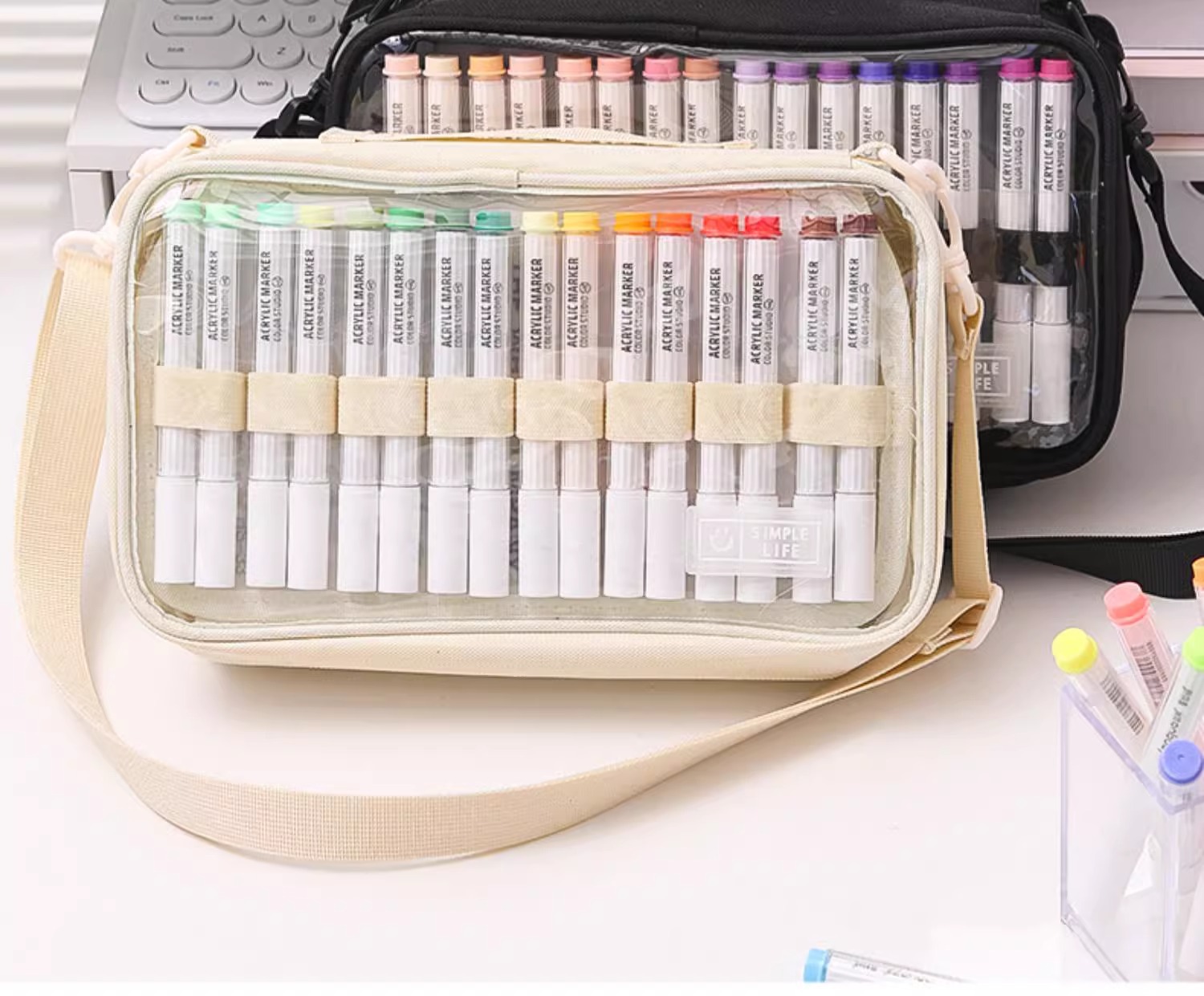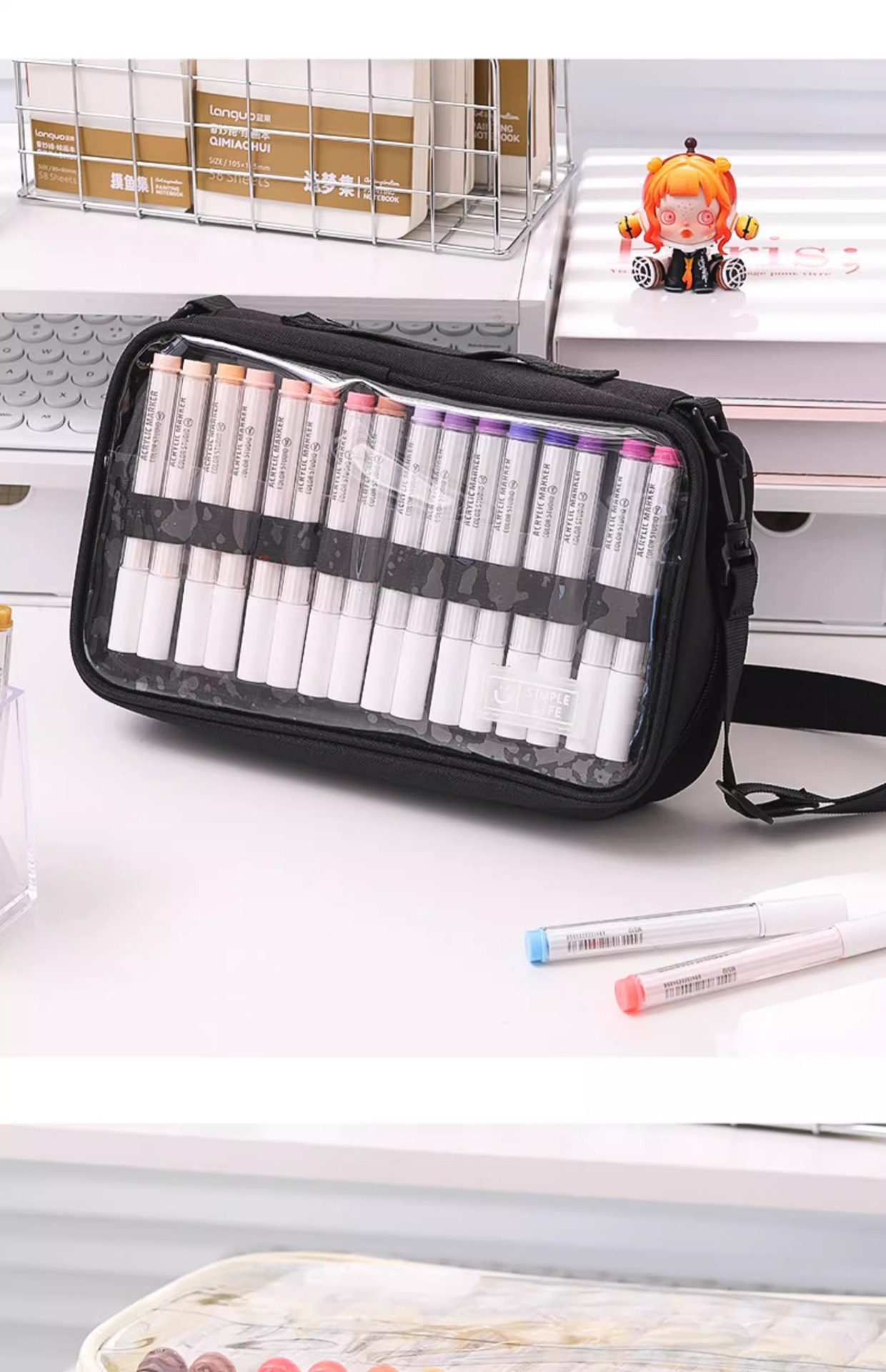 블루 과일 저장 가방 대용량 멀티 레이어 아크릴 마커 펜 저장 휴대용 크로스 바디 단일 어깨 투명 다기능 연필 케이스