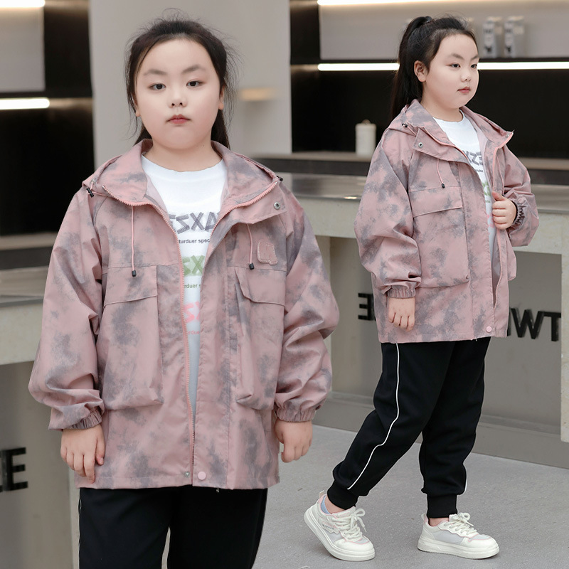 뚱뚱한 여자 코트 플러스 뚱뚱한 플러스 2024 새로운 스타일 중대형 어린이 후드 방풍 재킷 어린이 재킷 봄과 가을