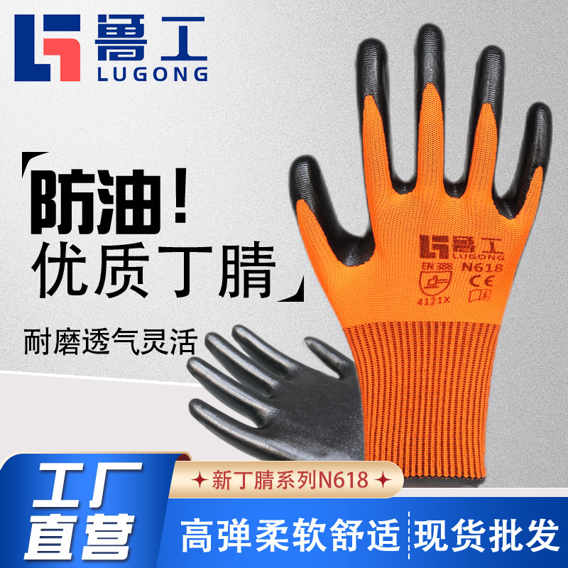 N618 나일론 니트릴 노동 보호 장갑, 방수 및 내마모성, 13바늘 건설 자동차 수리 현장 작업 장갑스토어 가기