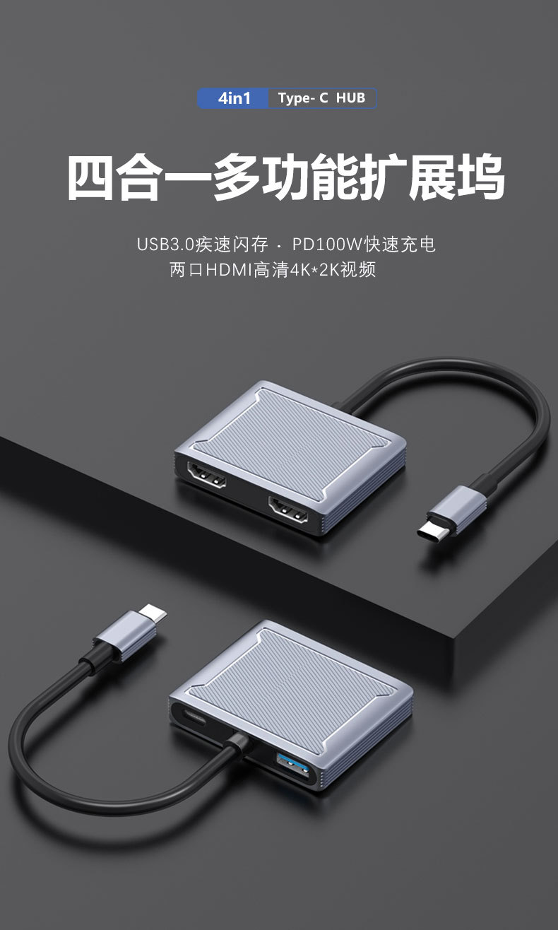 Type-C-듀얼 HDMI 도킹 스테이션 4K 스크린 프로젝션 HUB usb3.0 4 대 1 다기능 어댑터 확장 도크스토어 가기