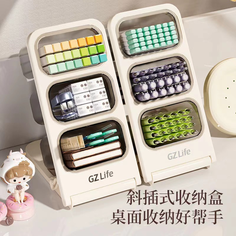 데스크탑 스토리지 박스 학교 시즌 학생 데스크 경사 펜 홀더 슬롯 문구 화장품 보관 상자스토어 가기