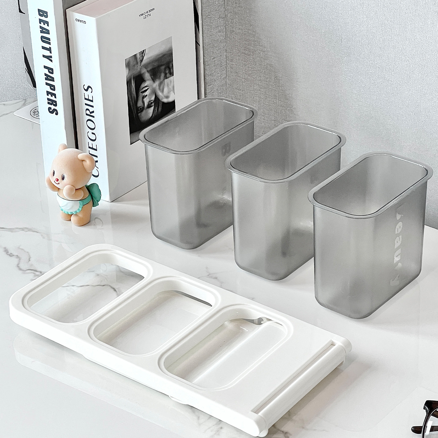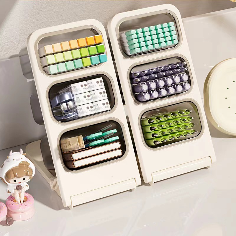 데스크탑 스토리지 박스 학교 시즌 학생 데스크 경사 펜 홀더 슬롯 문구 화장품 보관 상자