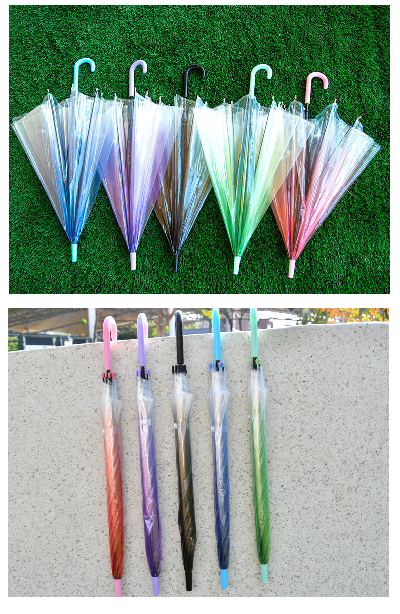도매 긴 핸들 두꺼운 그라디언트 자동 투명 우산 높은 가치 간단한 소녀 온라인 인기있는 학생 우산스토어 가기