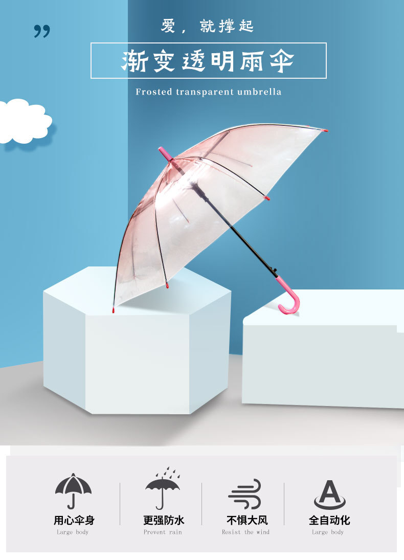도매 긴 핸들 두꺼운 그라디언트 자동 투명 우산 높은 가치 간단한 소녀 온라인 인기있는 학생 우산