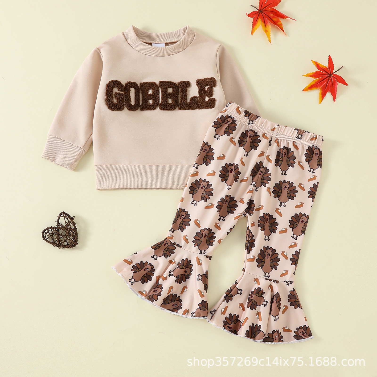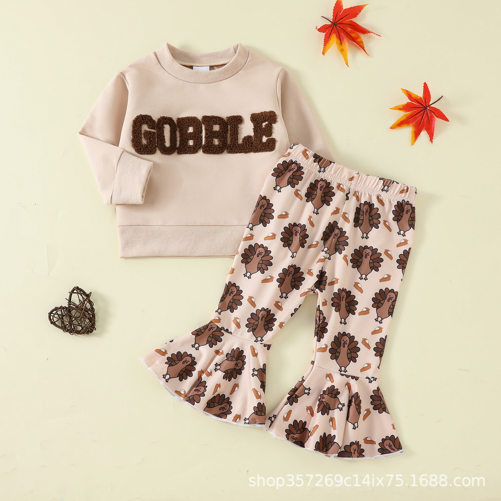아기 소녀의 유럽과 미국 수건 자수 풀오버 스웨트 셔츠 긴 소매 가을 패션 경적 바지 모자 투피스 세트스토어 가기
