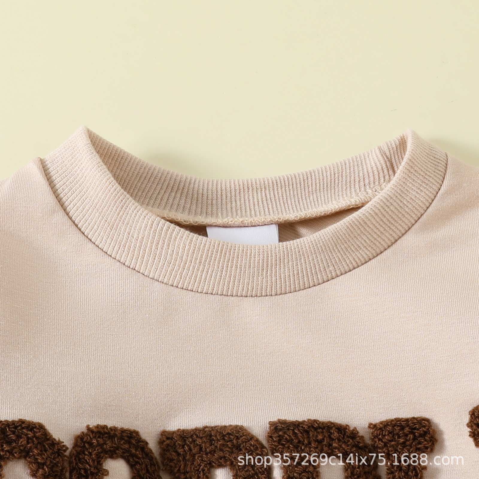 아기 소녀의 유럽과 미국 수건 자수 풀오버 스웨트 셔츠 긴 소매 가을 패션 경적 바지 모자 투피스 세트