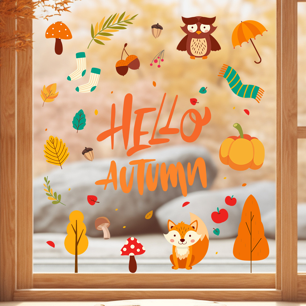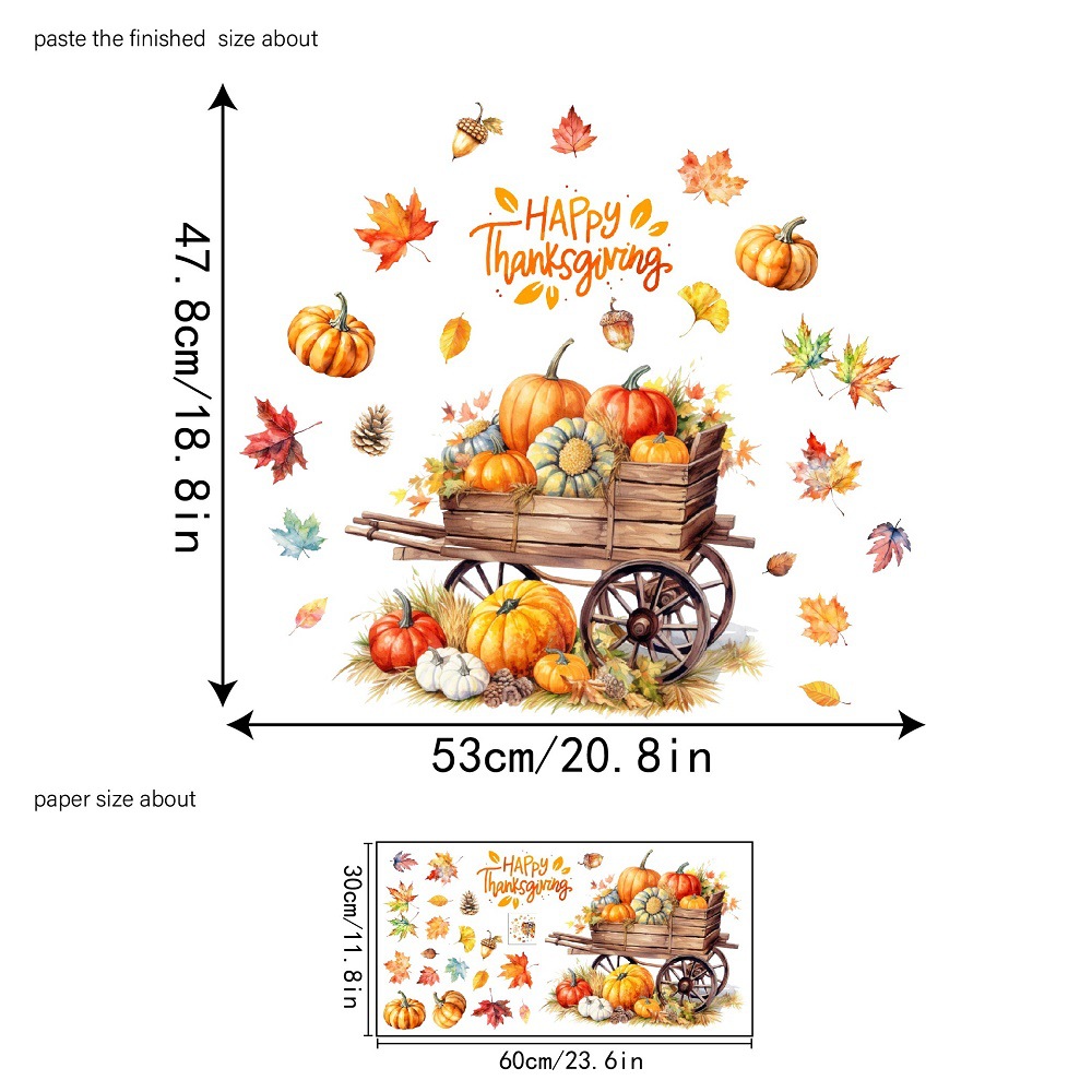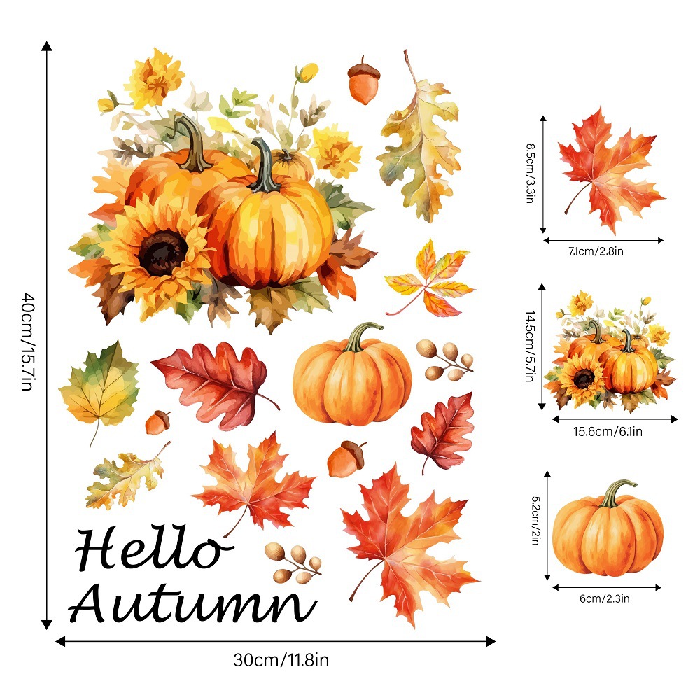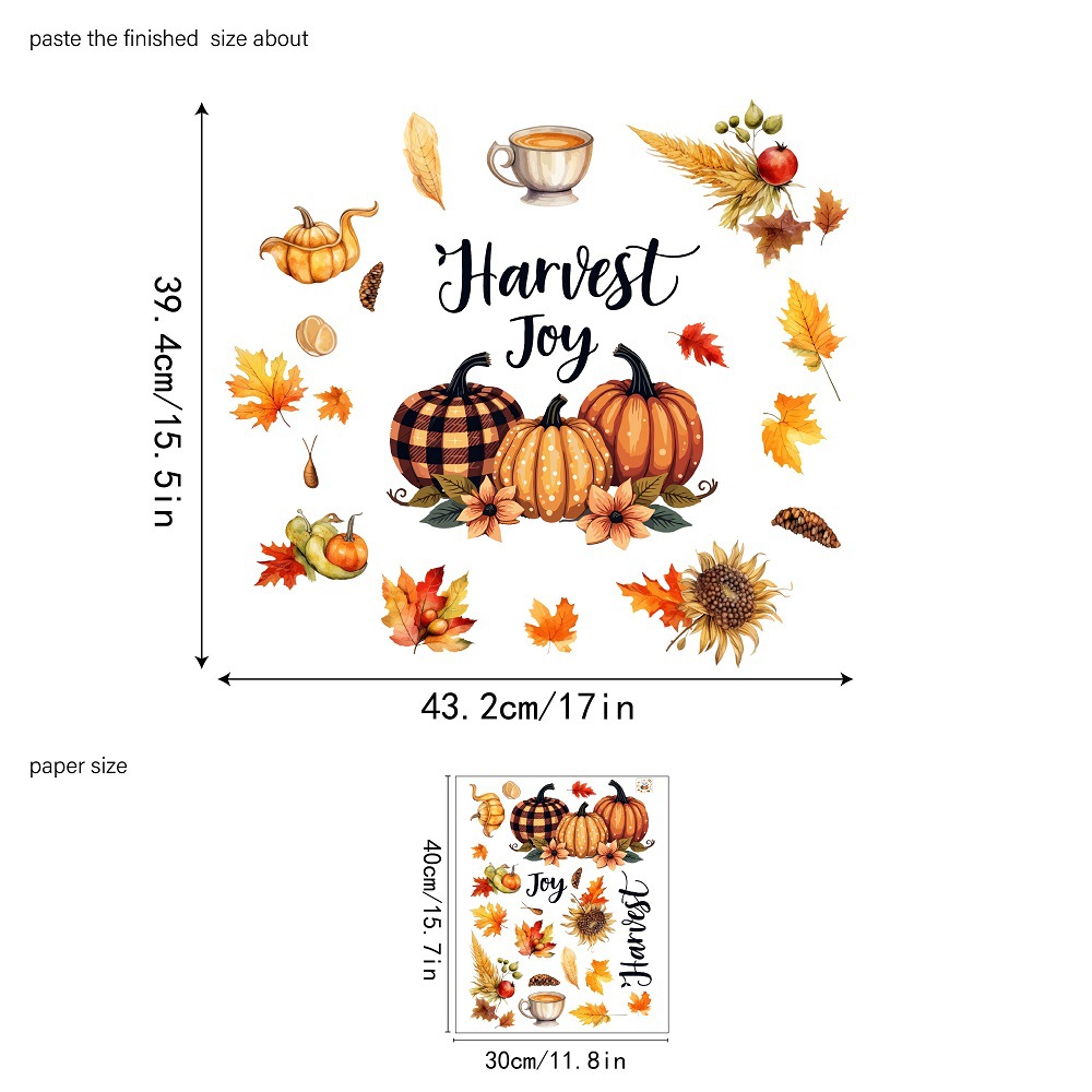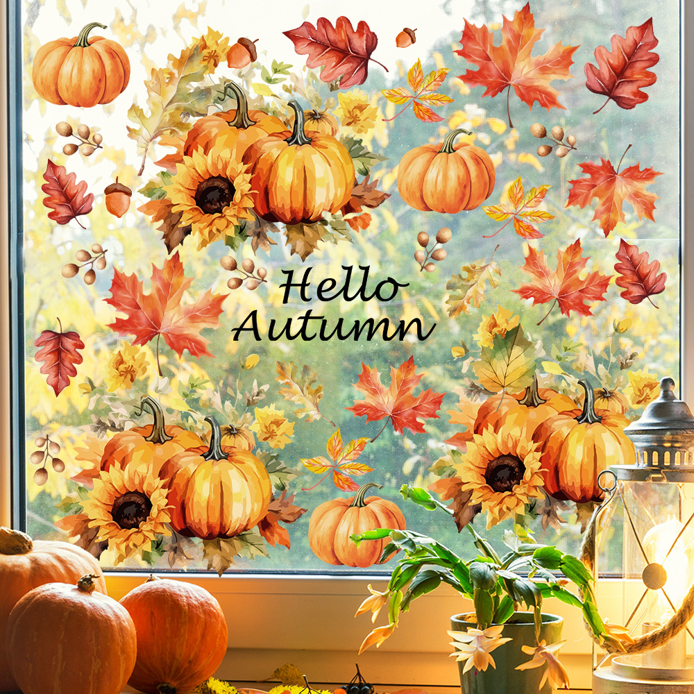 Yiyao 국경 새 추수 감사절 복고풍 단풍 잎 호박 유리 스티커 방 발코니 장식 접착제없는 정전기 스티커스토어 가기