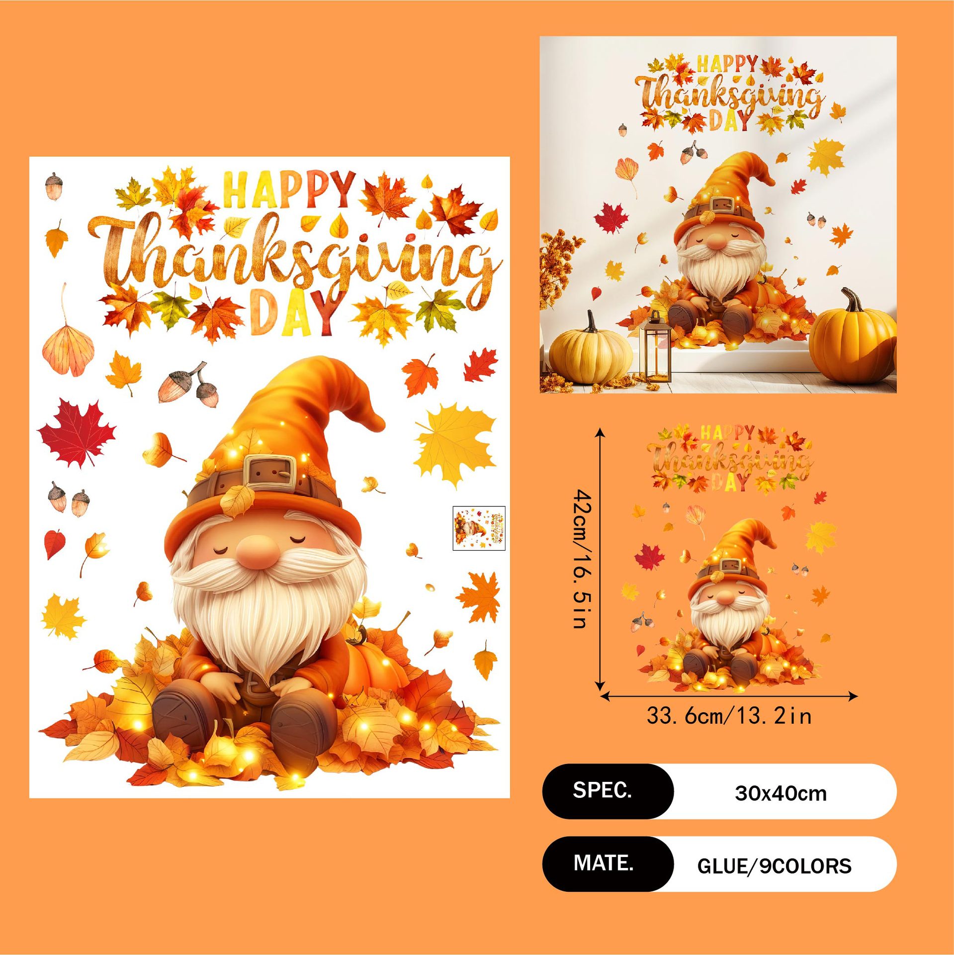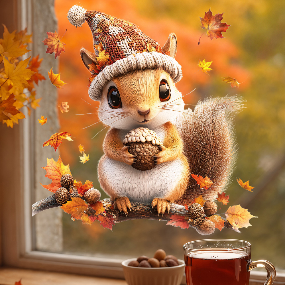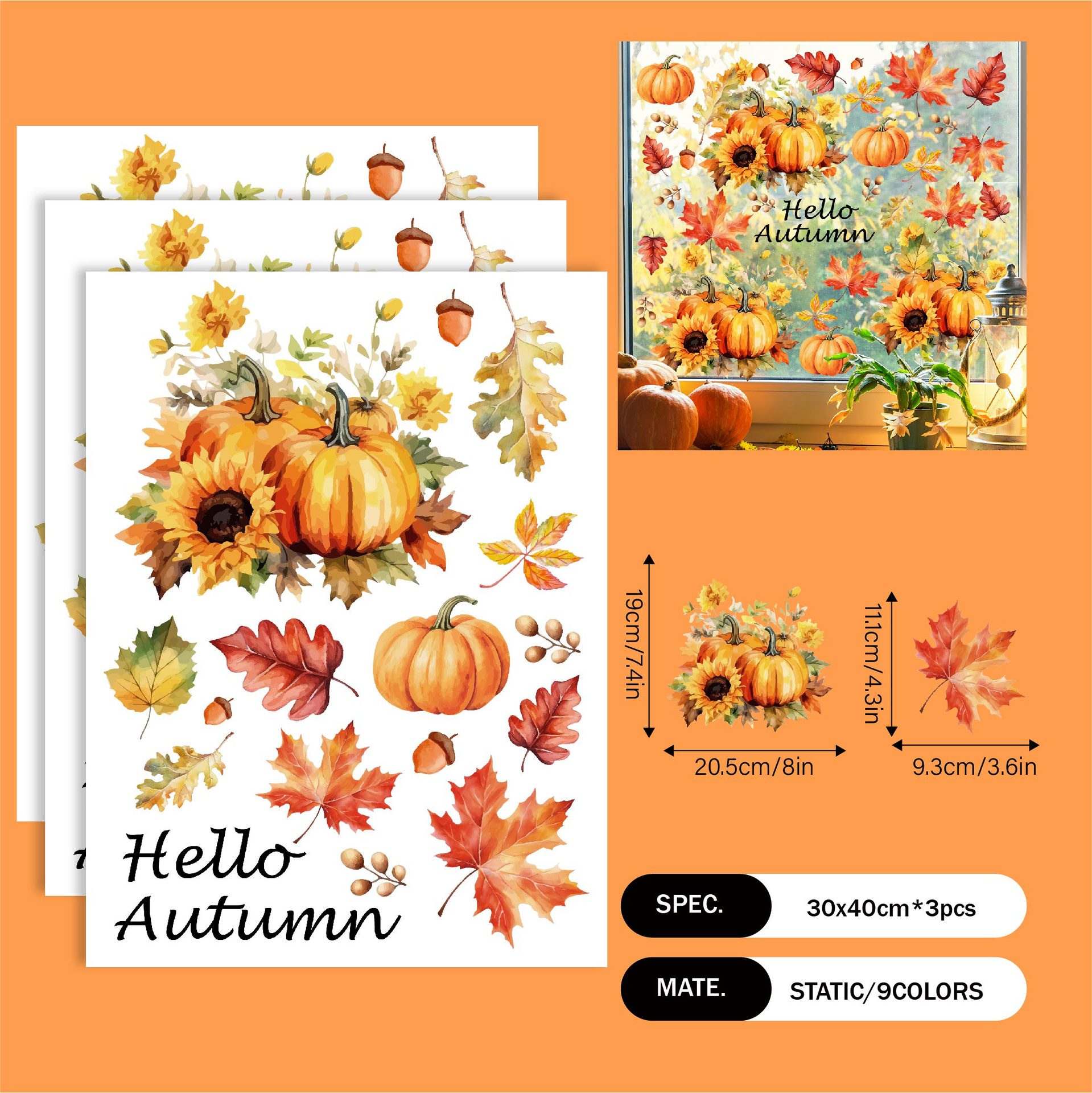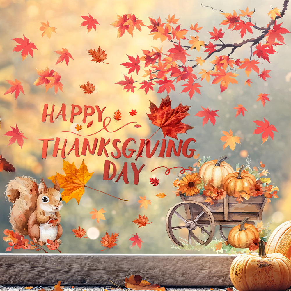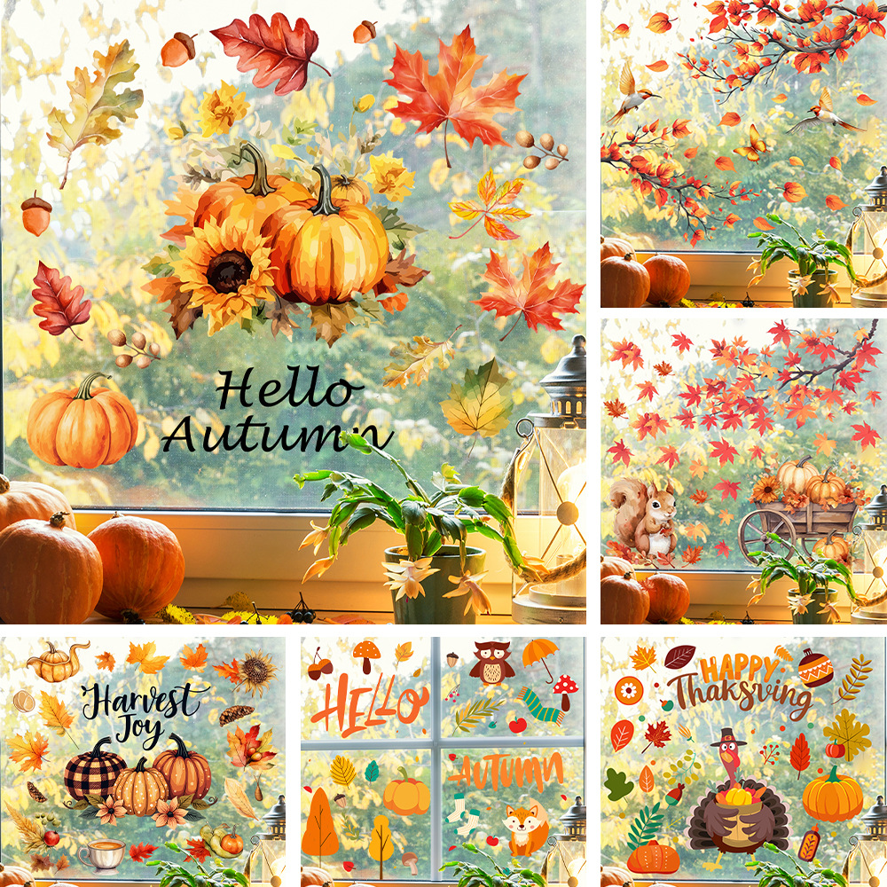Yiyao 국경 새 추수 감사절 복고풍 단풍 잎 호박 유리 스티커 방 발코니 장식 접착제없는 정전기 스티커