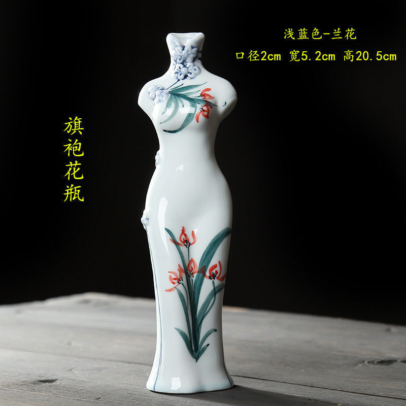 청자 중국식 청삼 문자 손으로 그린 꽃병 세라믹 꽃 삽입 건조 꽃 수경 꽃 지팡이 홈 바탕 화면 장식스토어 가기