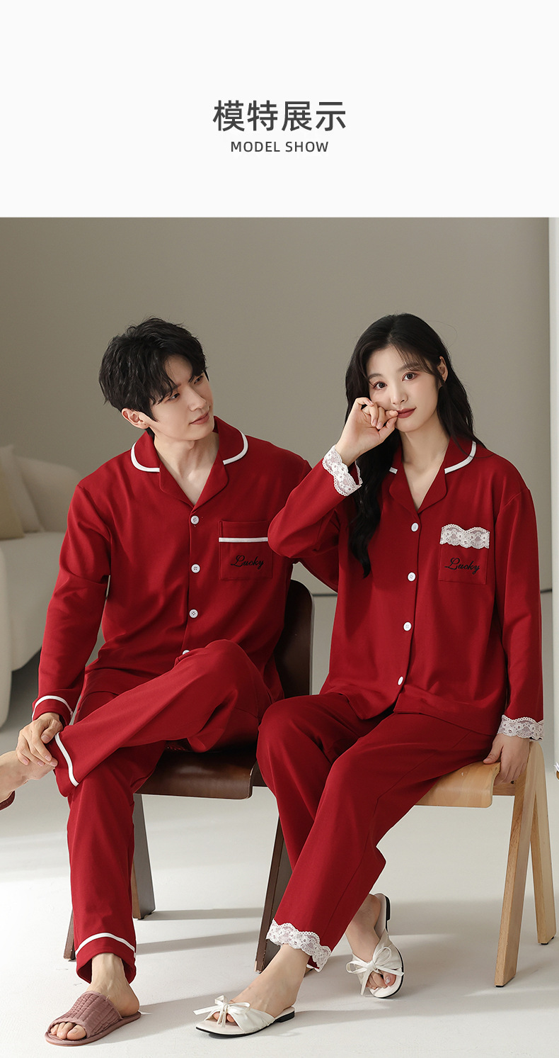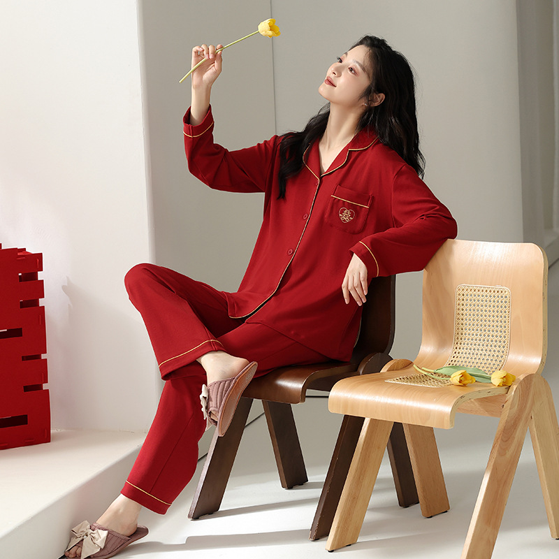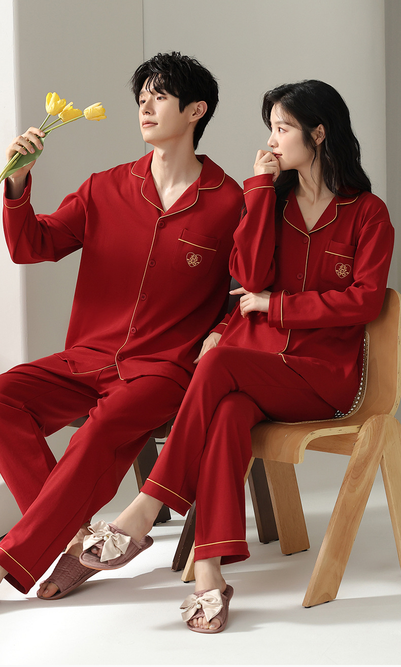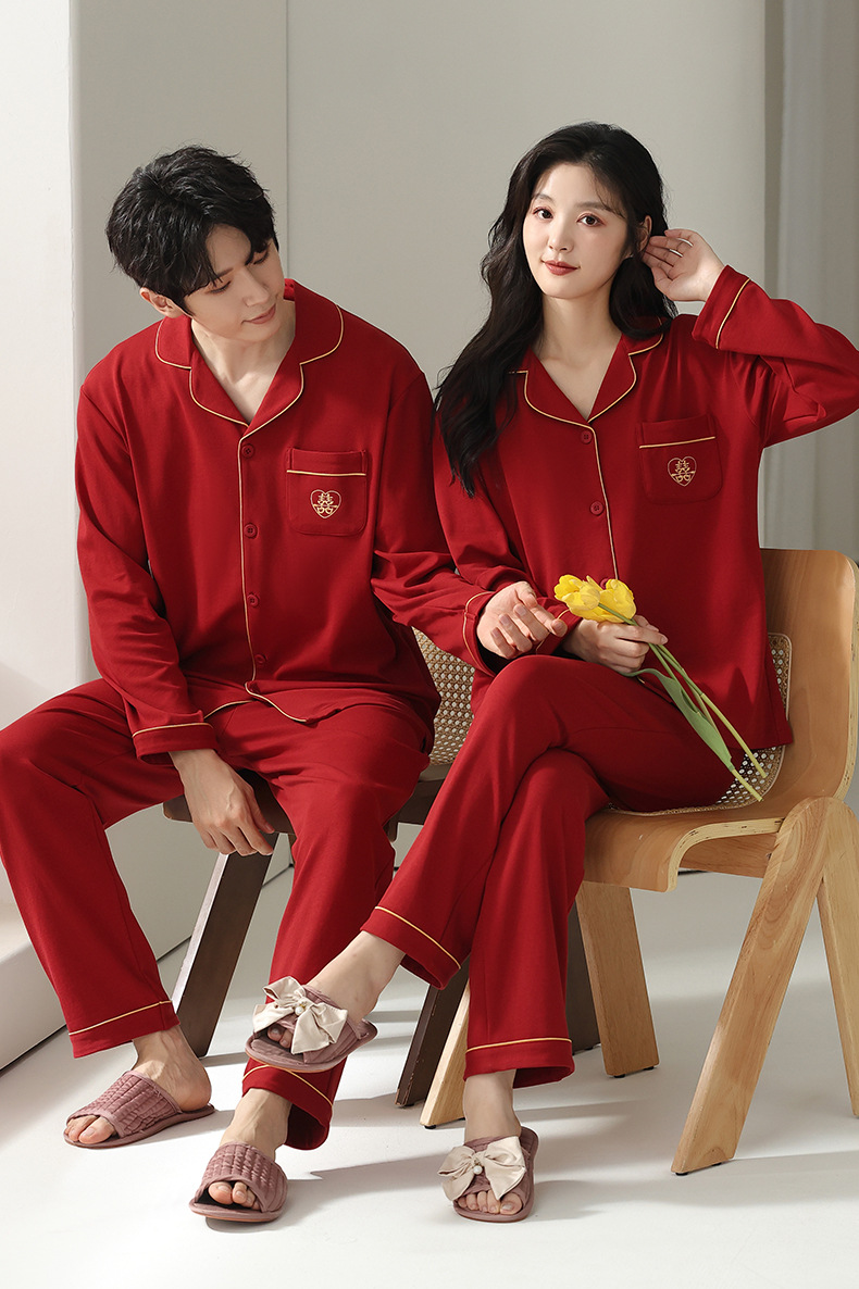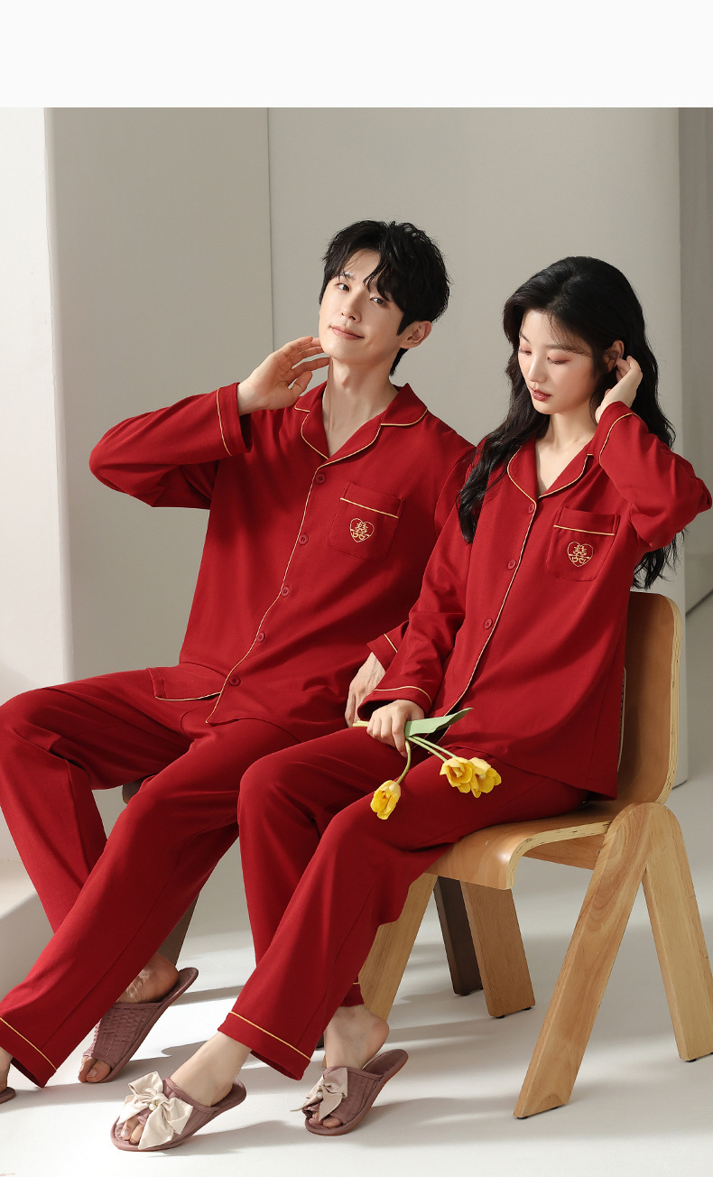 웨딩 코튼 파자마 여성 신부 신혼 부부 긴 소매 세트 레드 올해 남성 겉옷 홈 의류스토어 가기