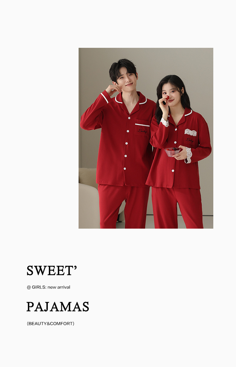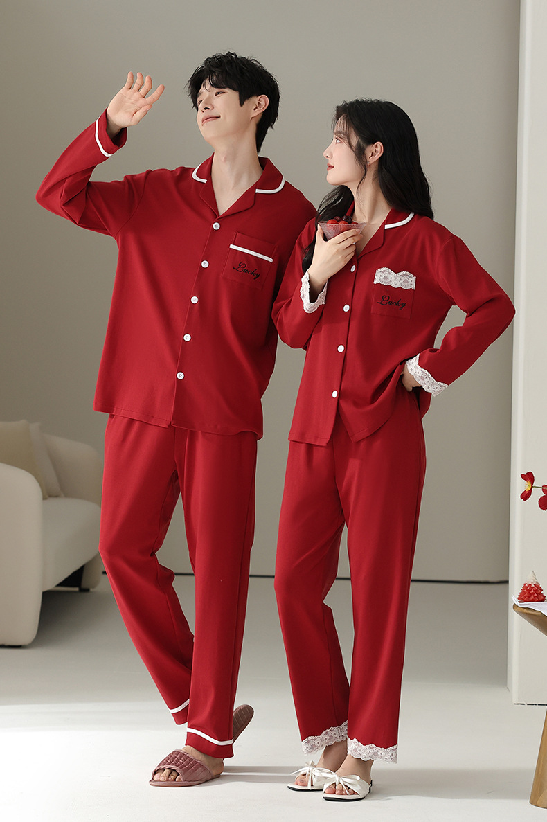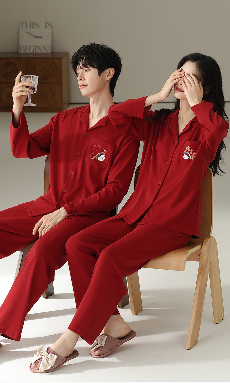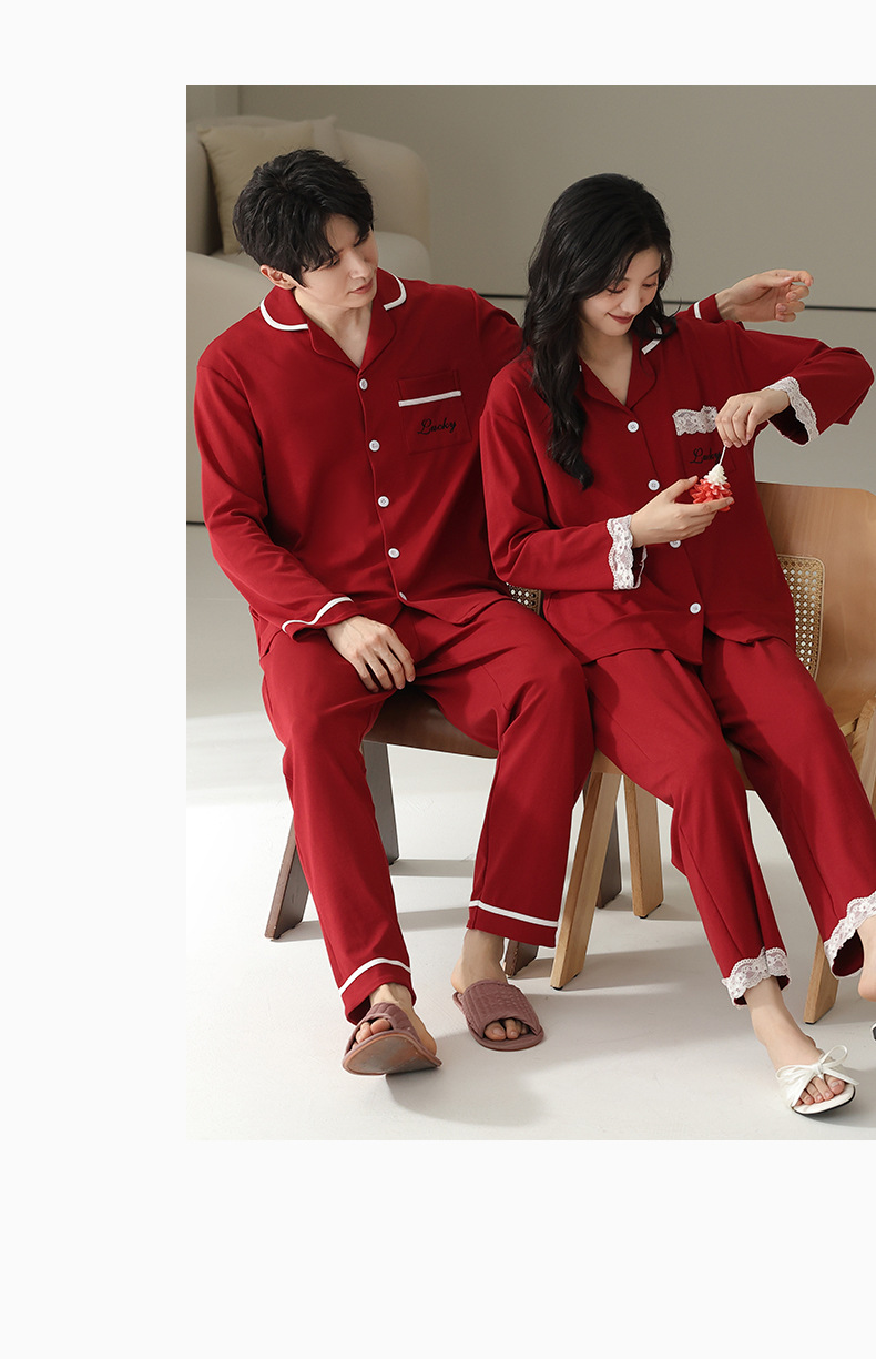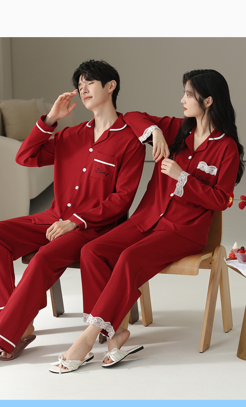 웨딩 코튼 파자마 여성 신부 신혼 부부 긴 소매 세트 레드 올해 남성 겉옷 홈 의류스토어 가기