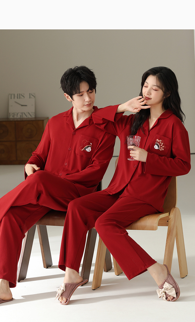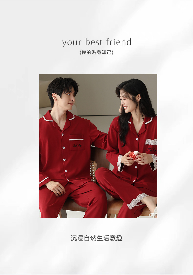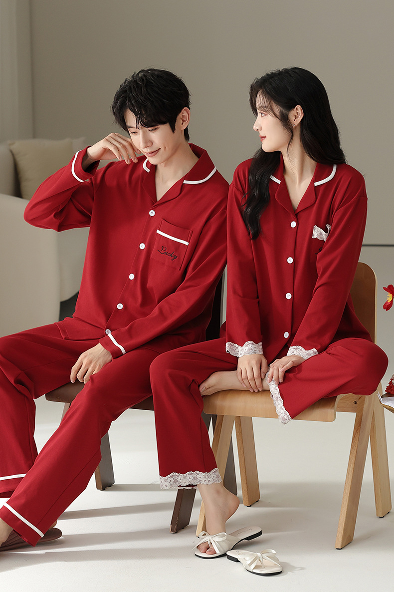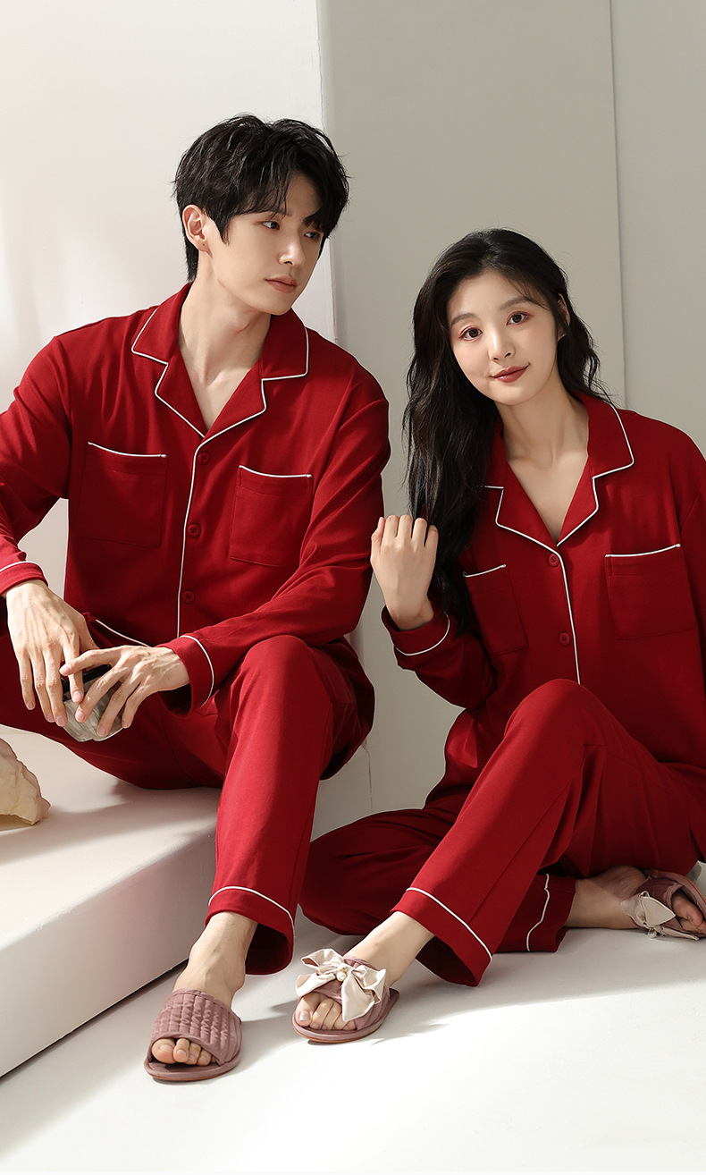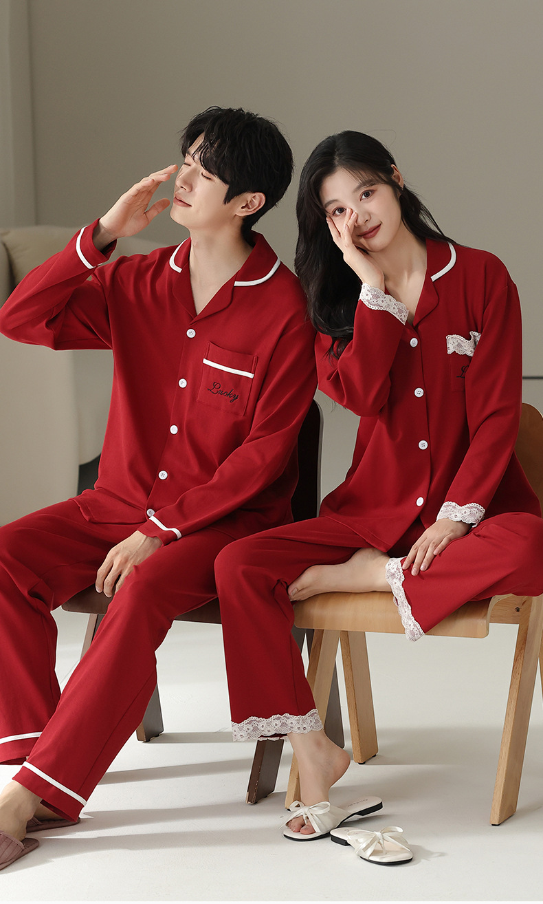 웨딩 코튼 파자마 여성 신부 신혼 부부 긴 소매 세트 레드 올해 남성 겉옷 홈 의류스토어 가기