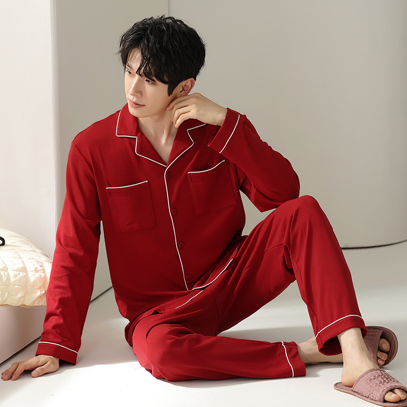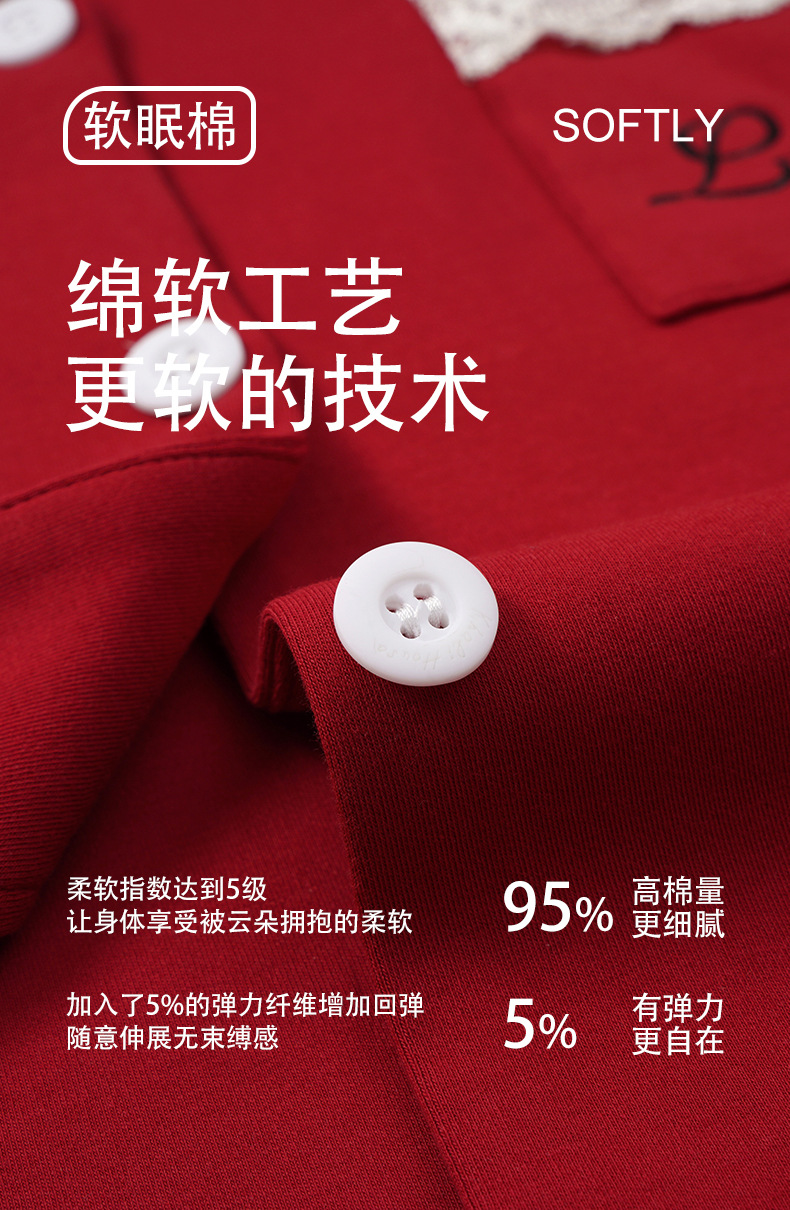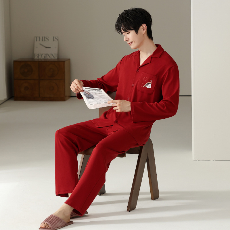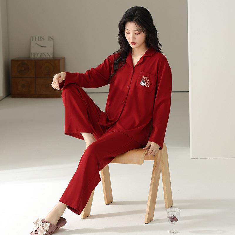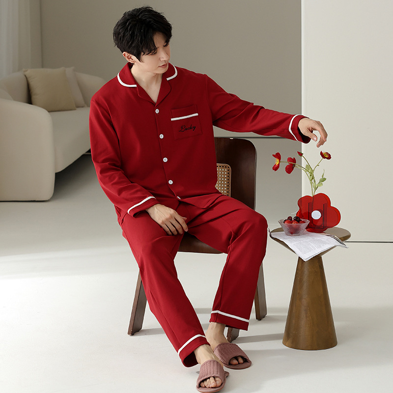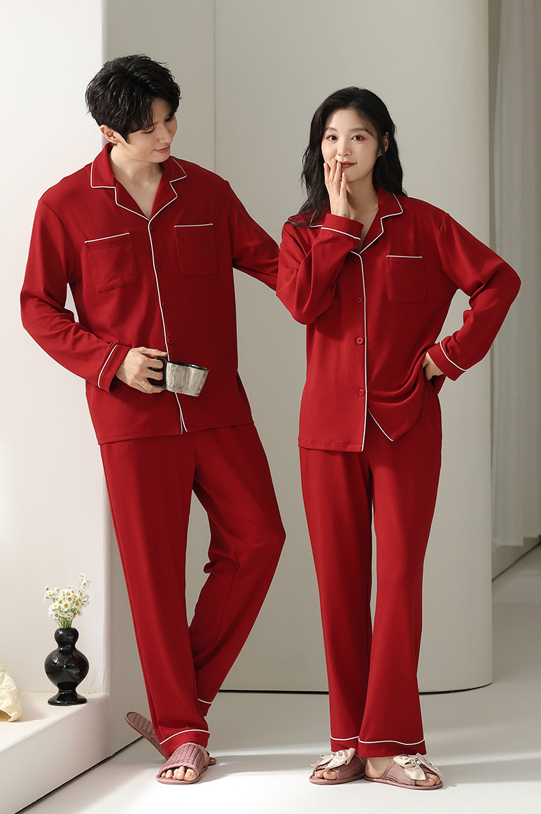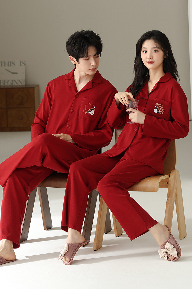 웨딩 코튼 파자마 여성 신부 신혼 부부 긴 소매 세트 레드 올해 남성 겉옷 홈 의류스토어 가기