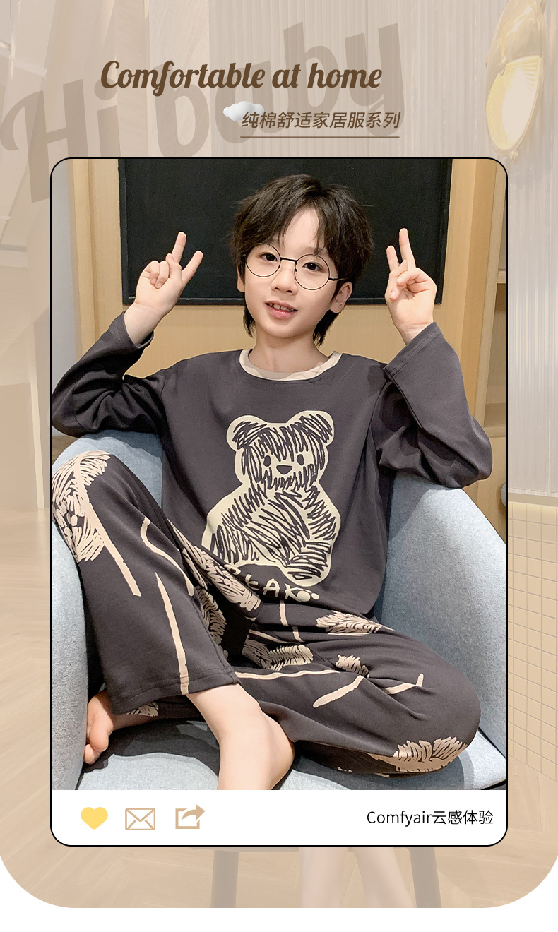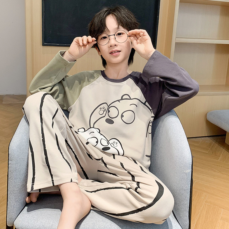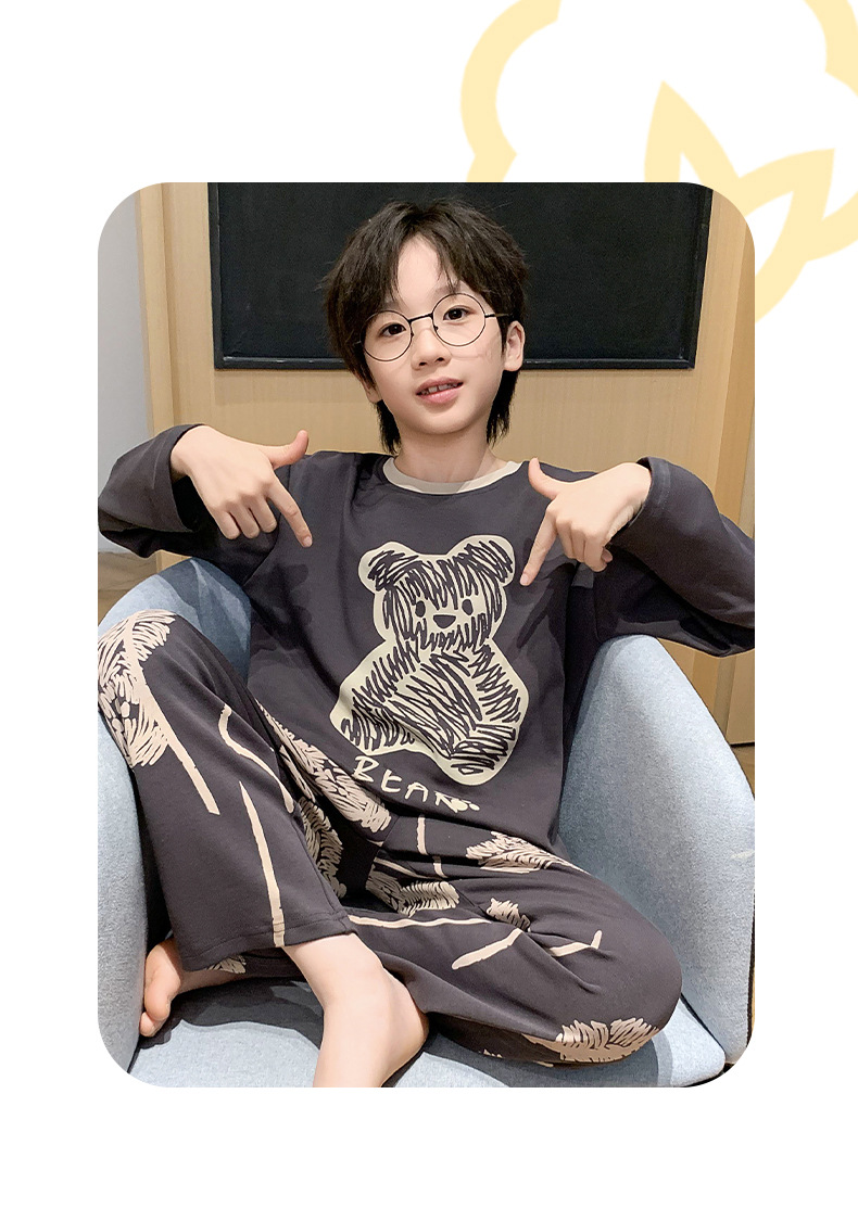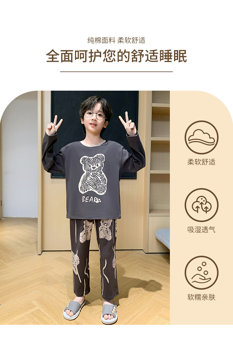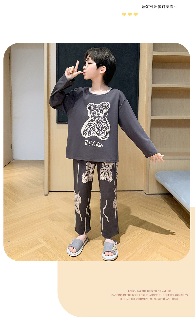 어린이 잠옷 소년 봄과 가을면 풀오버 긴 소매 세트 소년 큰 어린이 곰 만화 2024 홈 옷