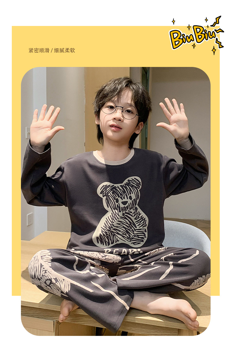 어린이 잠옷 소년 봄과 가을면 풀오버 긴 소매 세트 소년 큰 어린이 곰 만화 2024 홈 옷스토어 가기