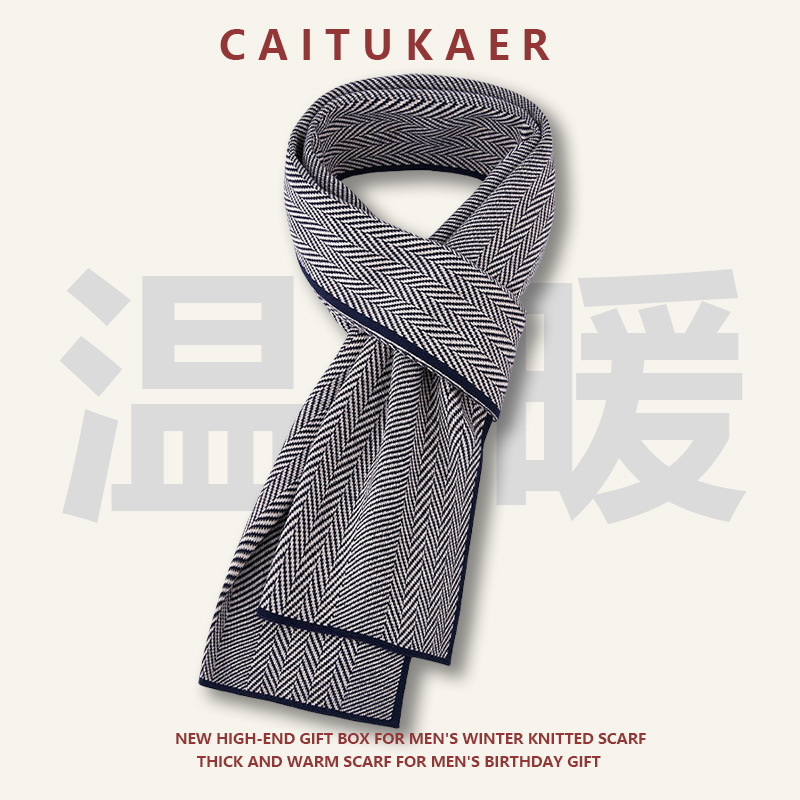 하이 엔드 남성 헤링본 스카프 선물 상자 두껍게 캐주얼 비즈니스 따뜻한 방풍 스카프 겨울 올 매치 니트스토어 가기
