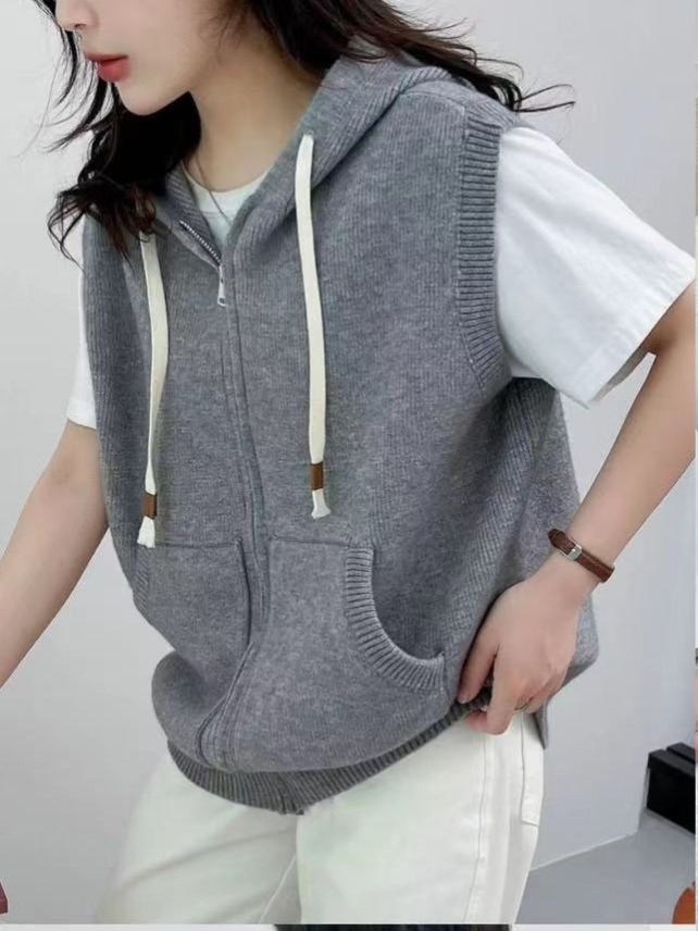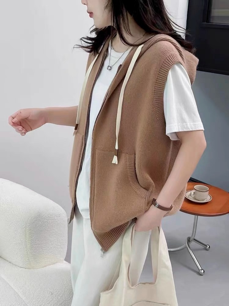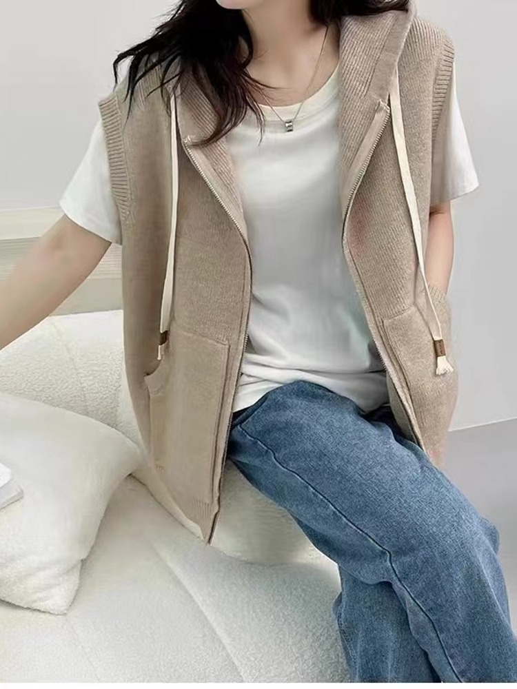 솔리드 컬러 패션 후드 레이스 업 니트 조끼 여성의 가을과 겨울 새로운 소프트 왁스 조끼 루즈 웨이스트 코트 여성용 트렌디스토어 가기