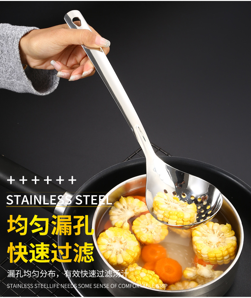 스테인레스 스틸 수프 스푼 소쿠더 주방 대형 수프 스푼 두꺼운 냄비 스푼 긴 손잡이 숟가락 가정용 주방 도구스토어 가기