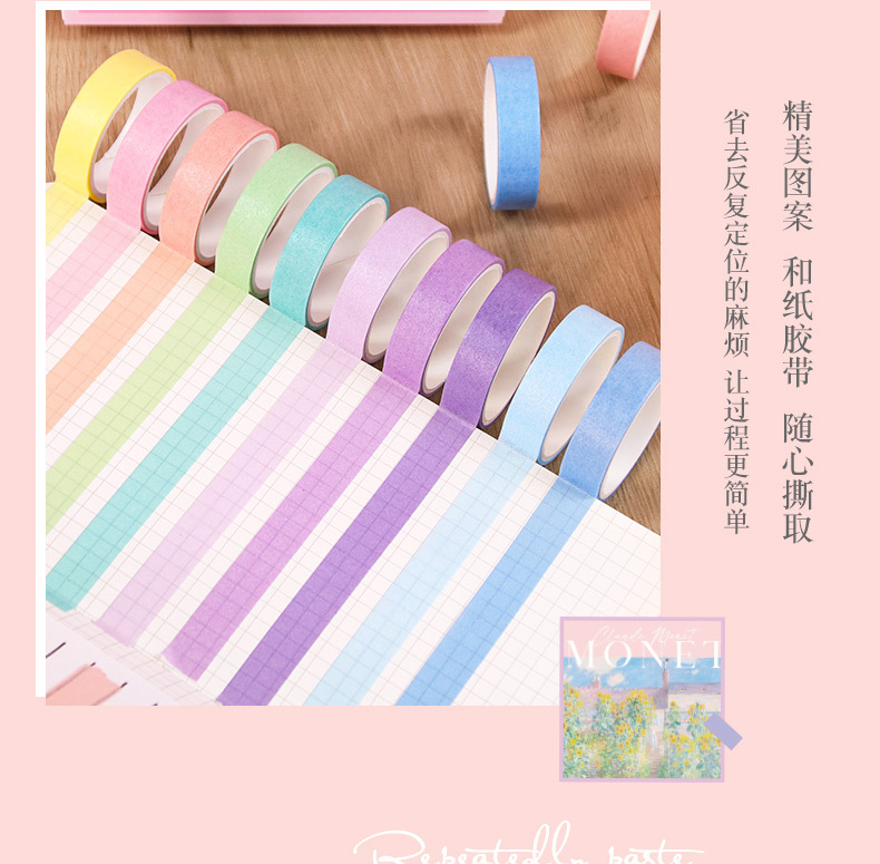 손 계정 테이프 기본 Macaron 단색 복고풍 및 종이 테이프 컬러 인쇄 손 계정 세트 20스토어 가기