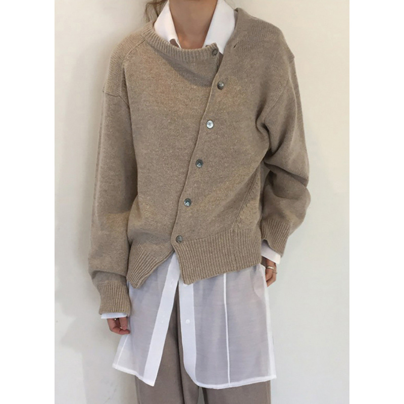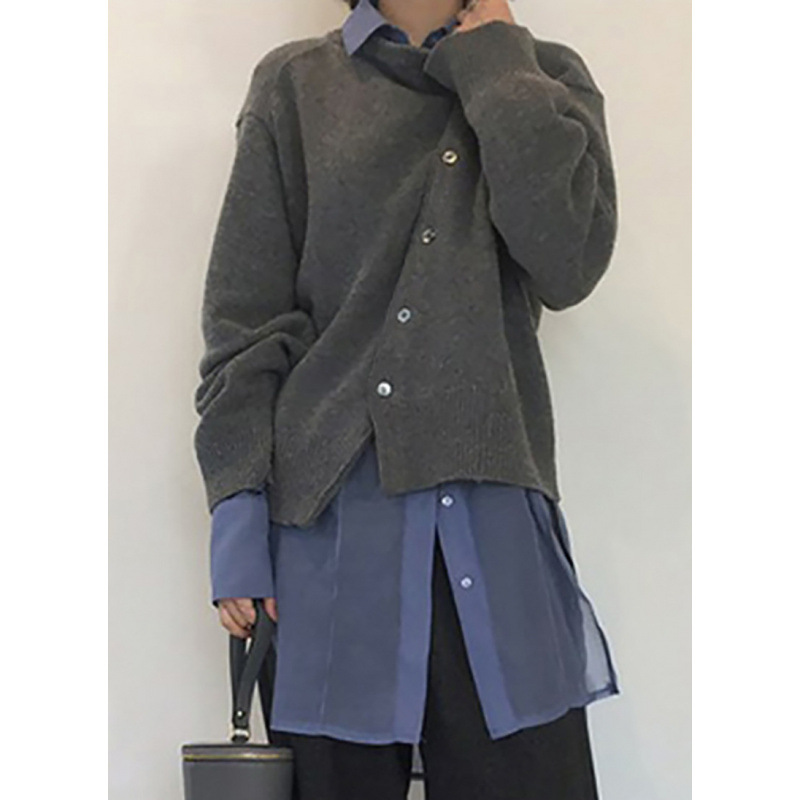 경사 버클 불규칙한 디자인의 봄 새 한국어 버전 게으른 바람 스웨터 카디건 둥근 목 니트 재킷 여성 도매스토어 가기