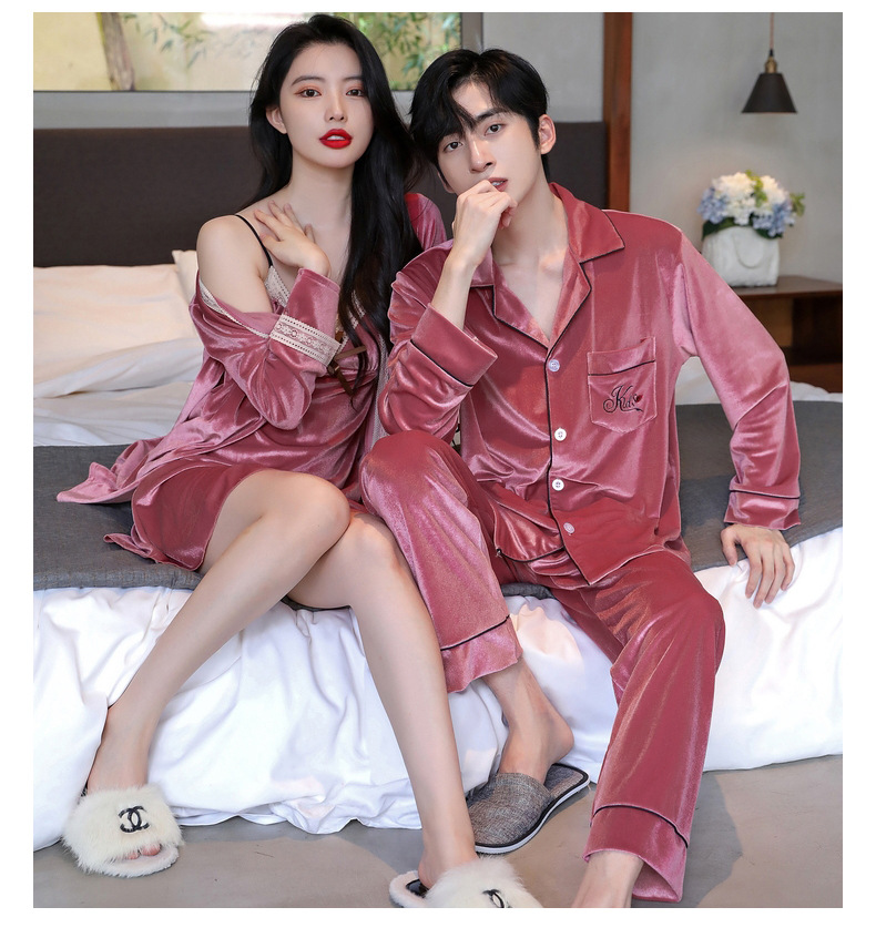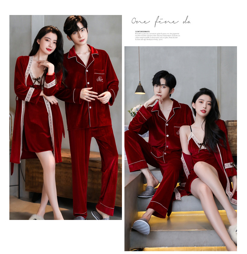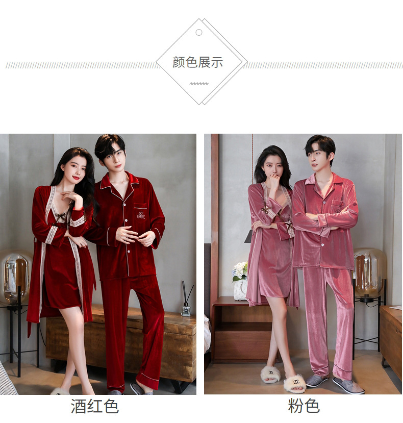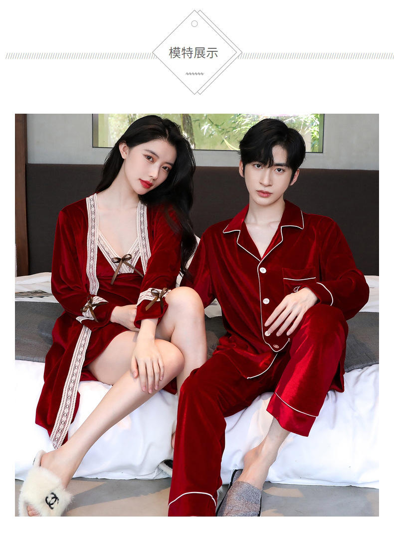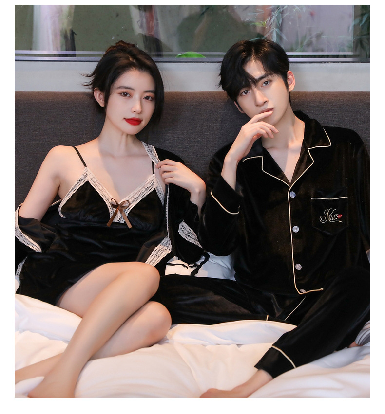 새 커플 잠옷 여성의 겨울 기모 섹시 레이스 나이트 드레스 투피스 세트 옷깃 카디건 플러스 사이즈 남성 홈 옷스토어 가기