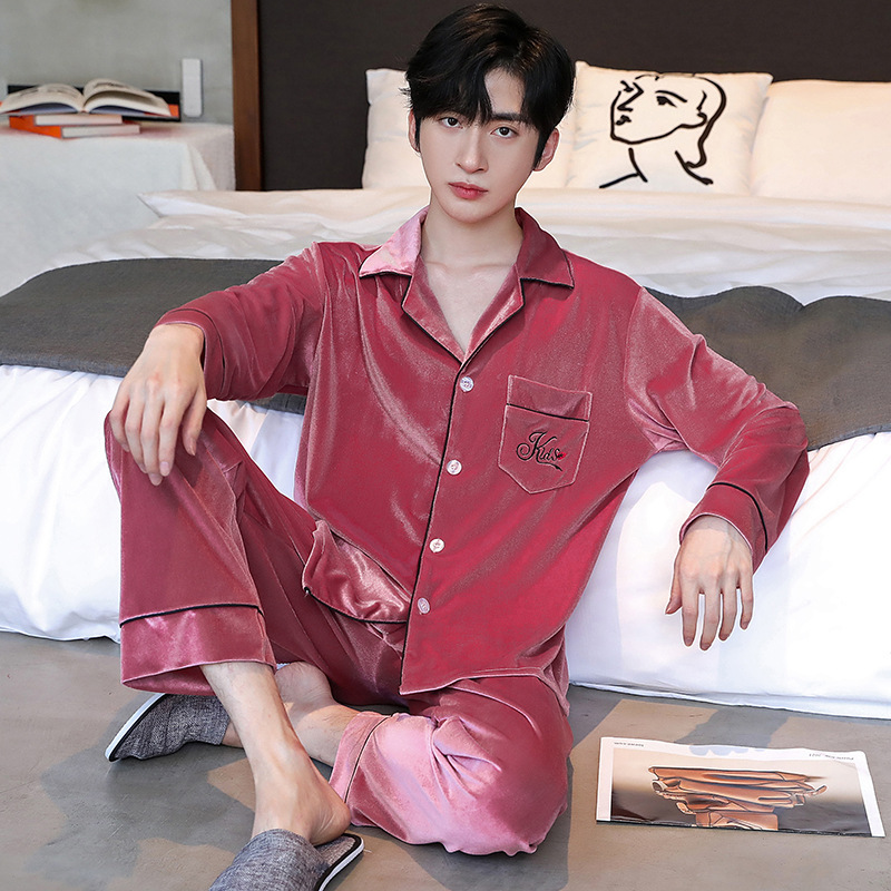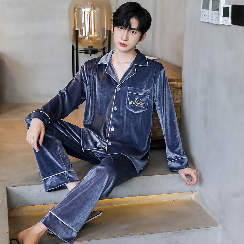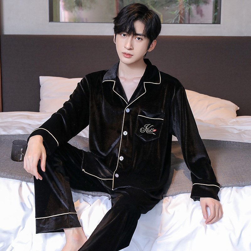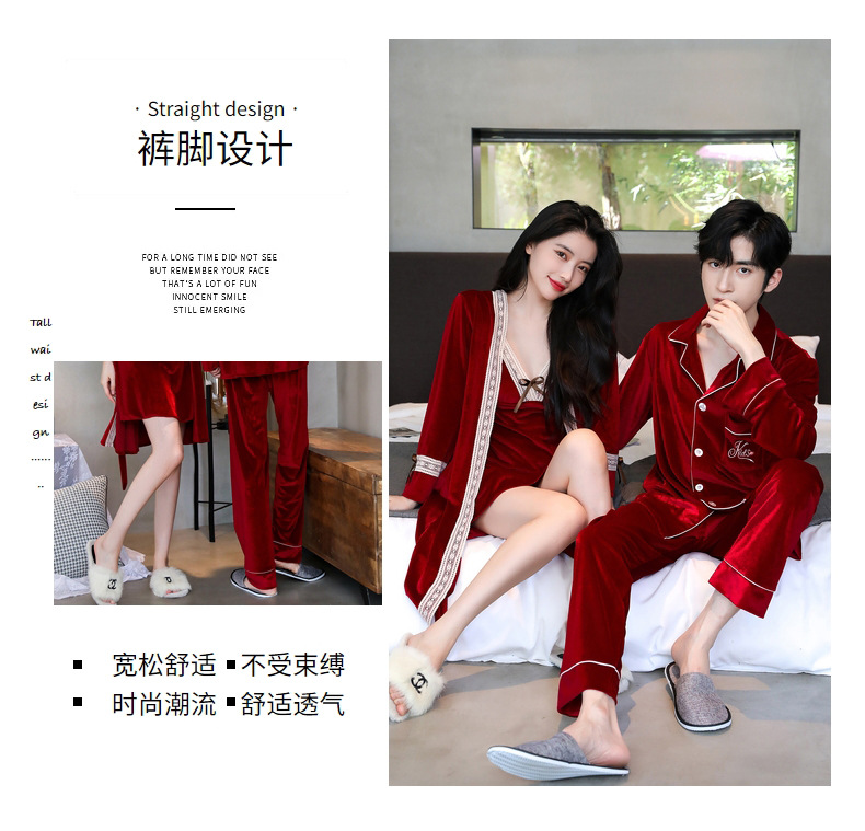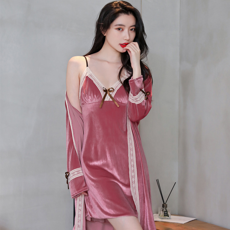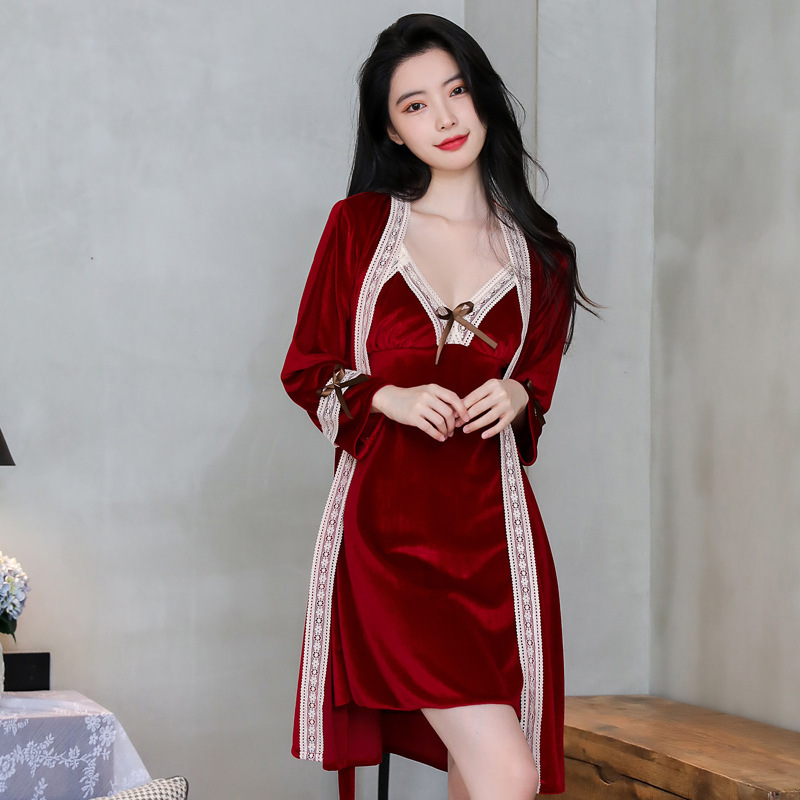새 커플 잠옷 여성의 겨울 기모 섹시 레이스 나이트 드레스 투피스 세트 옷깃 카디건 플러스 사이즈 남성 홈 옷스토어 가기