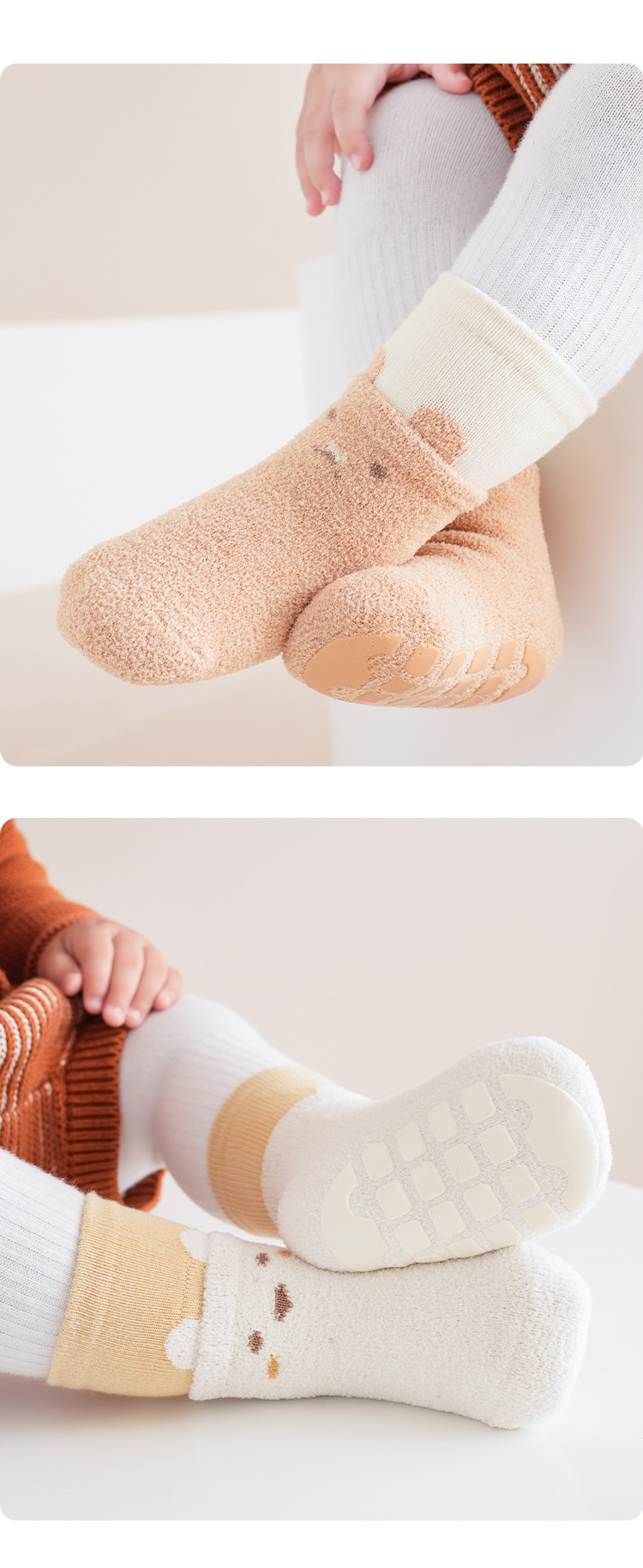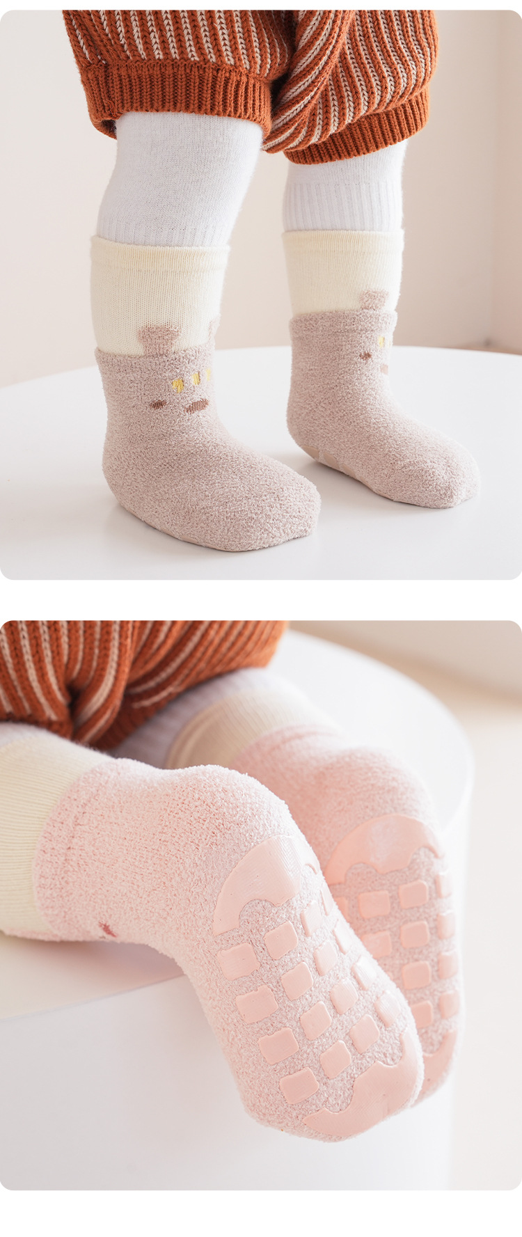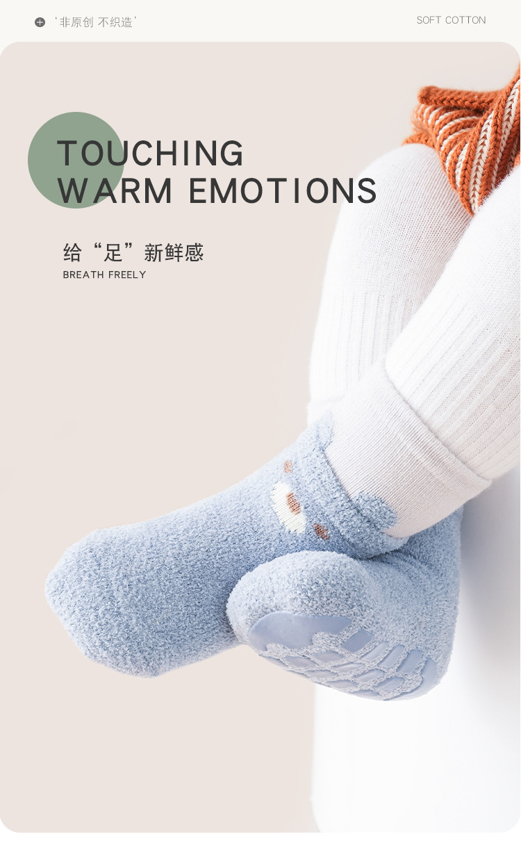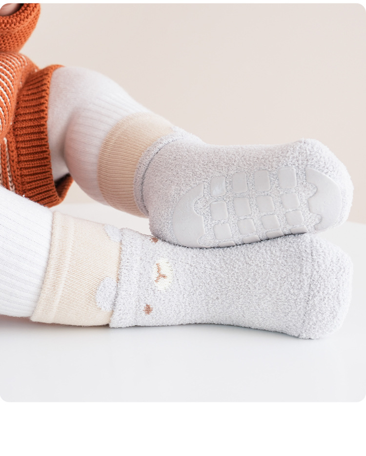 가을, 겨울 두꺼운 아기 바닥 양말 더블 루프 만화 색상 일치 아기 유아 양말 미끄럼 방지 양말 따뜻한 어린이 양말