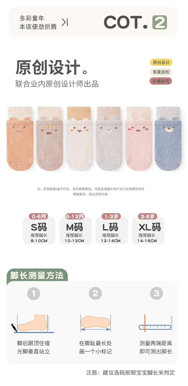 가을, 겨울 두꺼운 아기 바닥 양말 더블 루프 만화 색상 일치 아기 유아 양말 미끄럼 방지 양말 따뜻한 어린이 양말스토어 가기