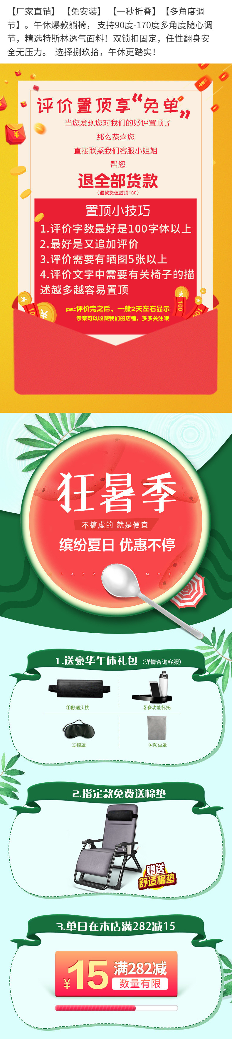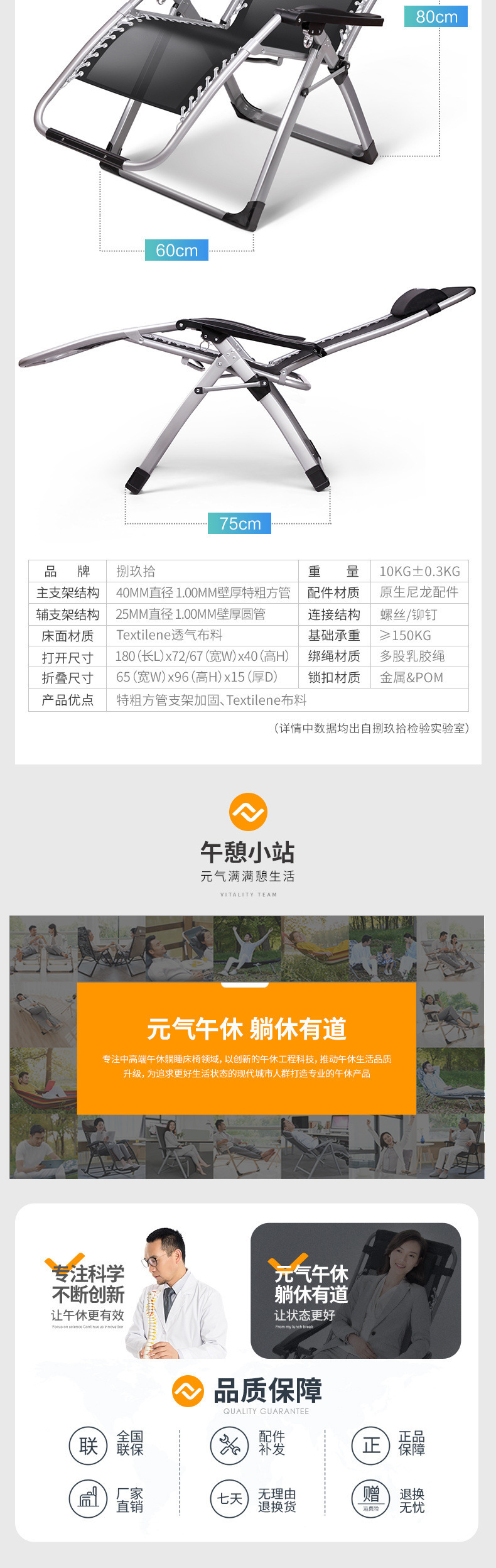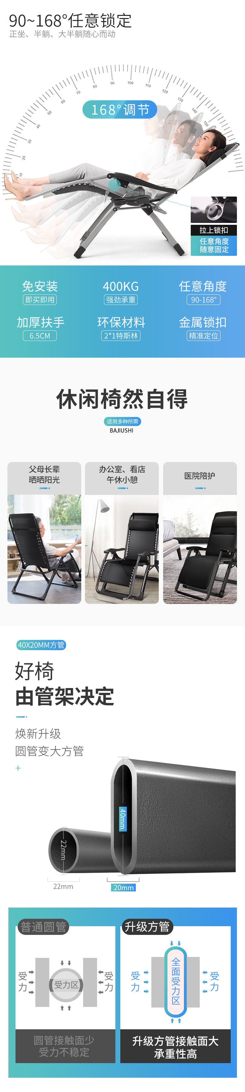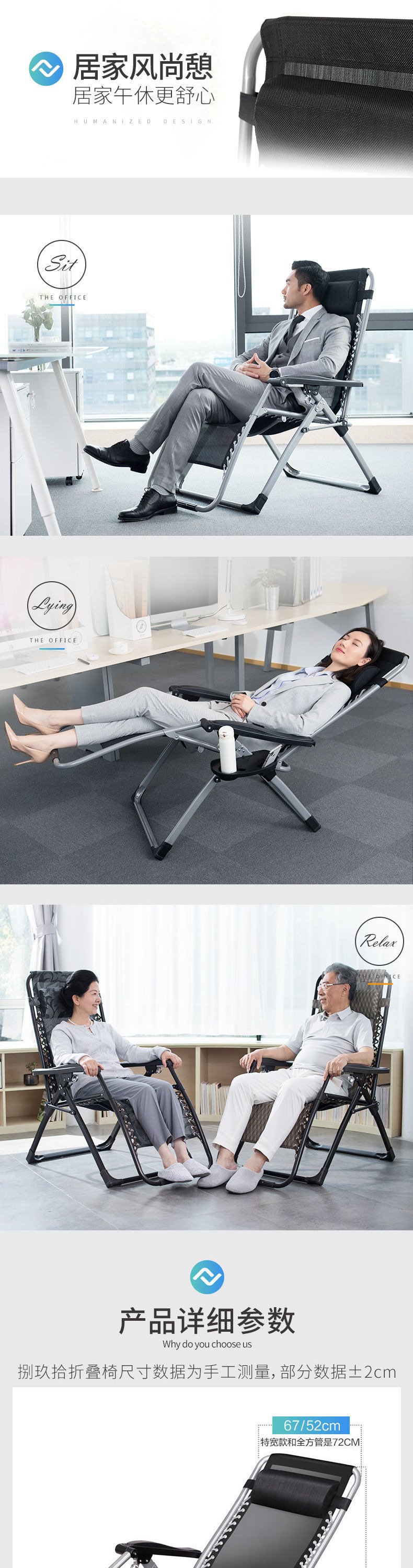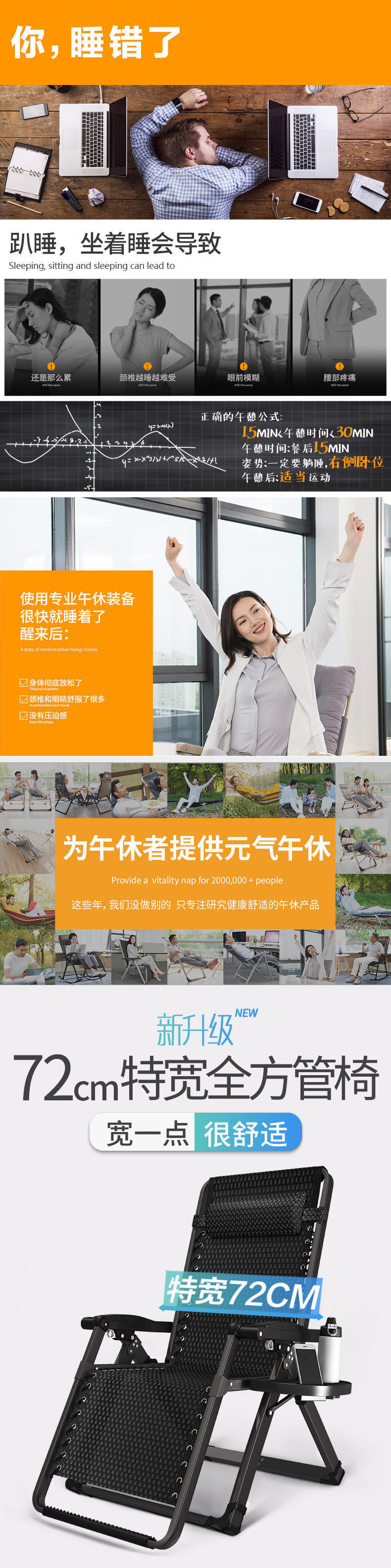 의자 접히는 리라이너 점심 휴식 침대 의자 낮잠 사무실 게으른 등받이 의자 동반 홈 비치 의자 여름스토어 가기
