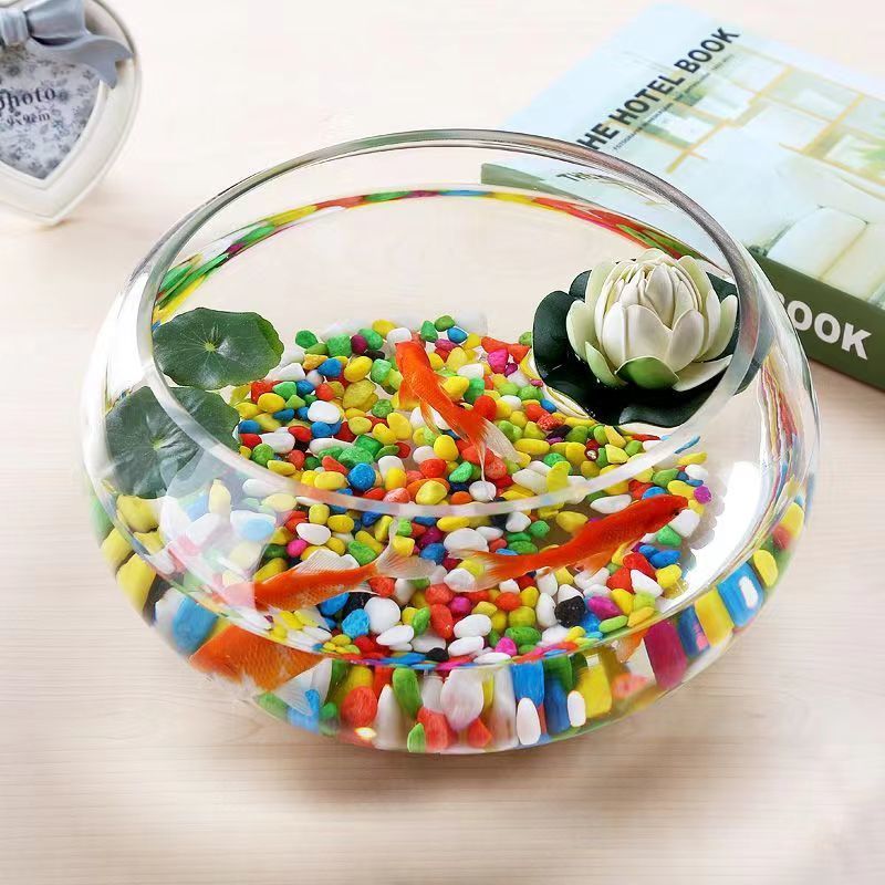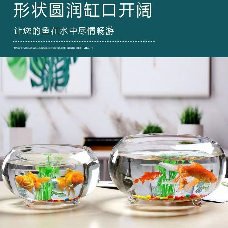 유리 물고기 탱크 라운드 투명한 대형 사무실 창조적 인 거실 베어 탱크 데스크탑 두꺼운 유리 드럼 탱크 금붕어 탱크