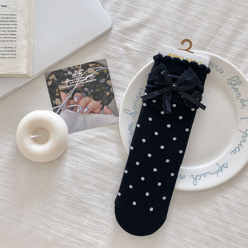 모리 소녀 스타일 레트로 웨이브 도트 양말 어린이 가을과 겨울 달콤한 대학 스타일 귀여운 활 레이스 더미 양말