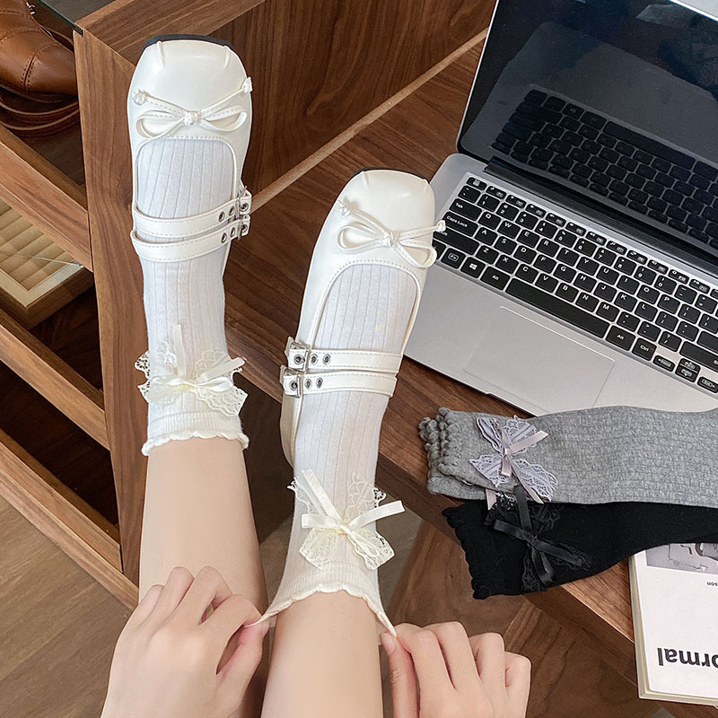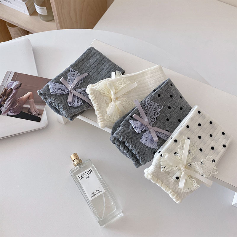 모리 소녀 스타일 레트로 웨이브 도트 양말 어린이 가을과 겨울 달콤한 대학 스타일 귀여운 활 레이스 더미 양말스토어 가기