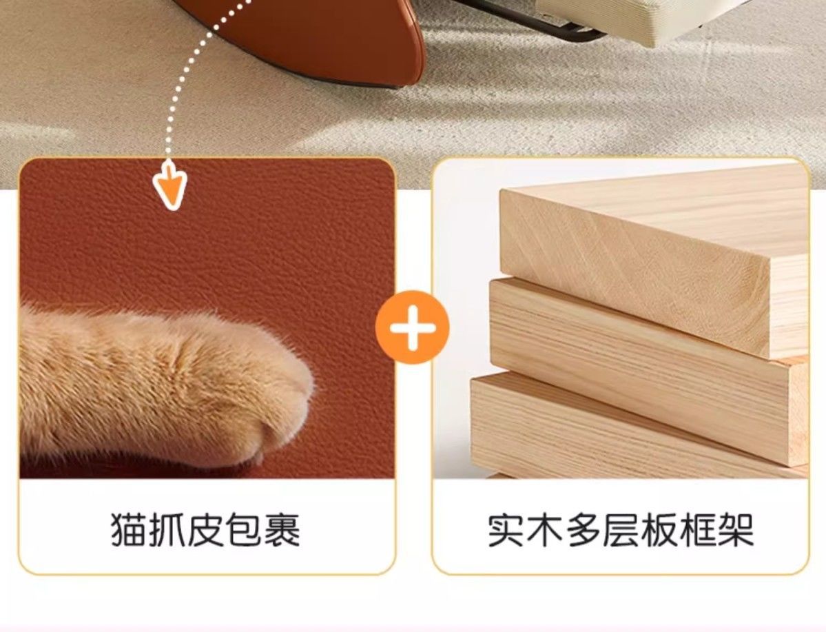 • 오프화이트 [팔걸이형 + 발판] 갈색 고양이 긁는 가죽 다리