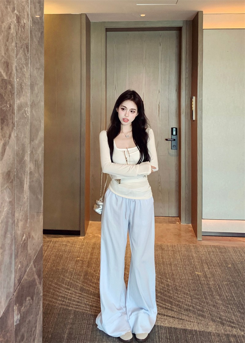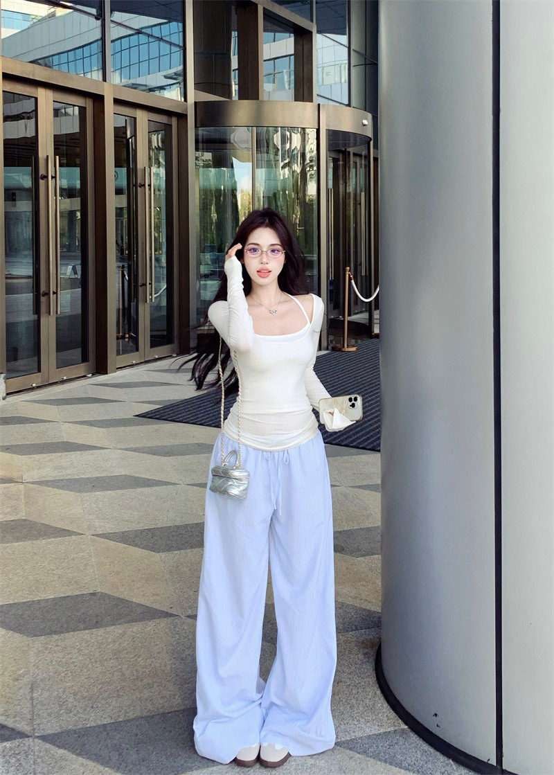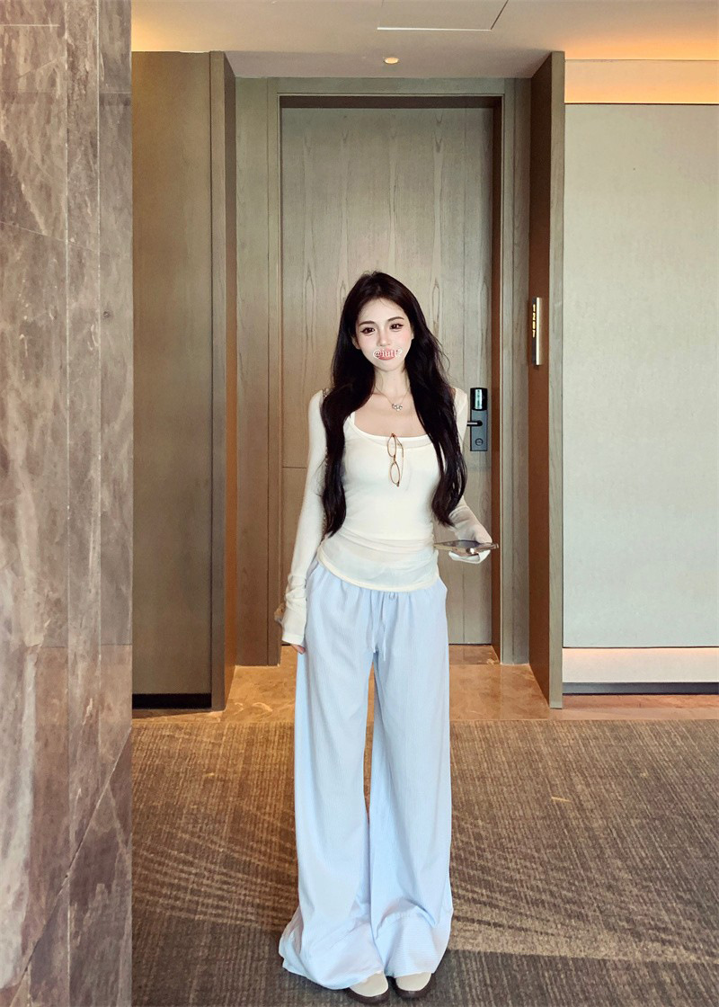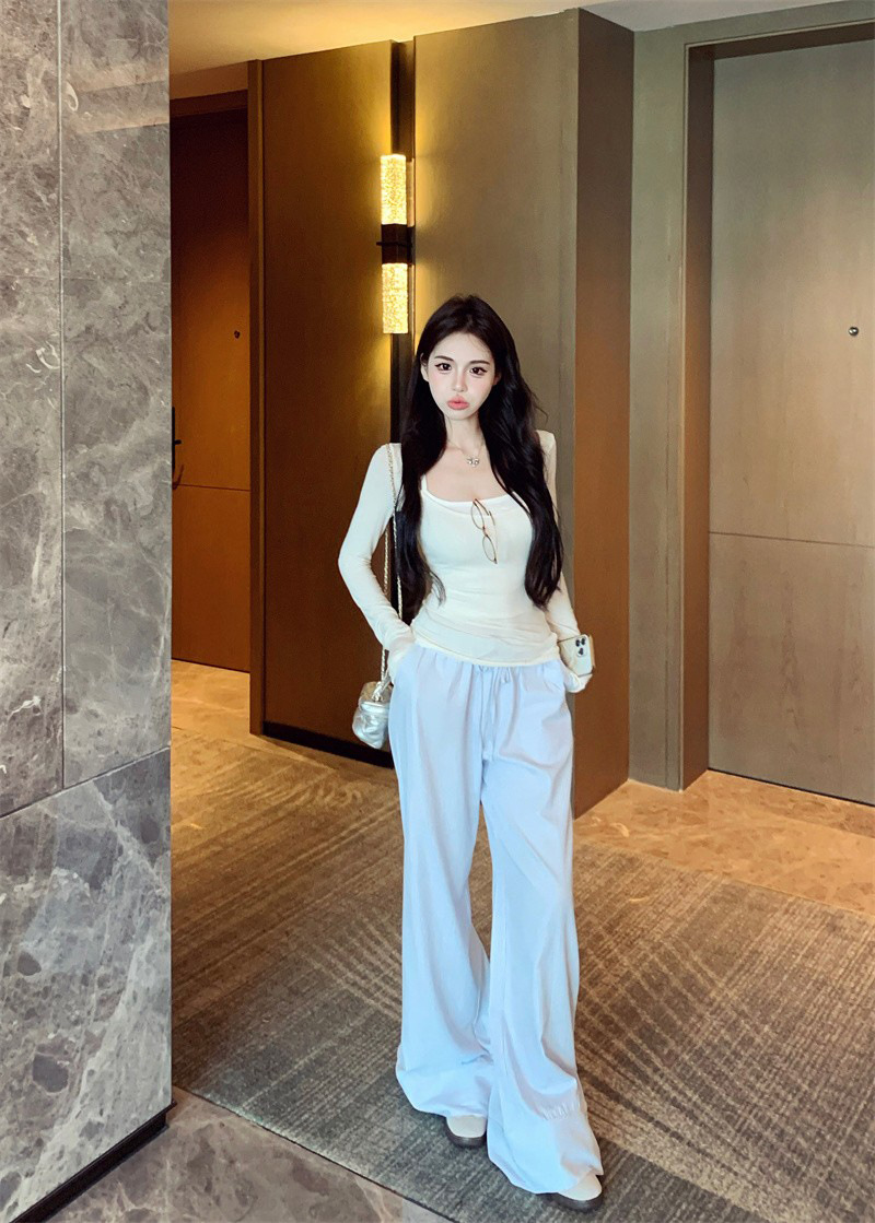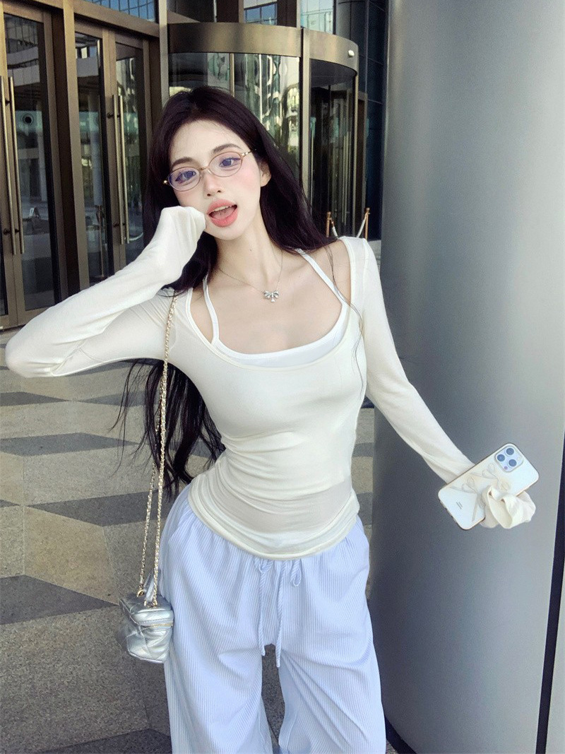 한국식 슬림핏 섹시 마이크로 투명 긴팔 티셔츠 여성 초가을 꽉 끼는 슬리밍 기본 올 매치 솔리드 컬러베이스 셔츠 탑