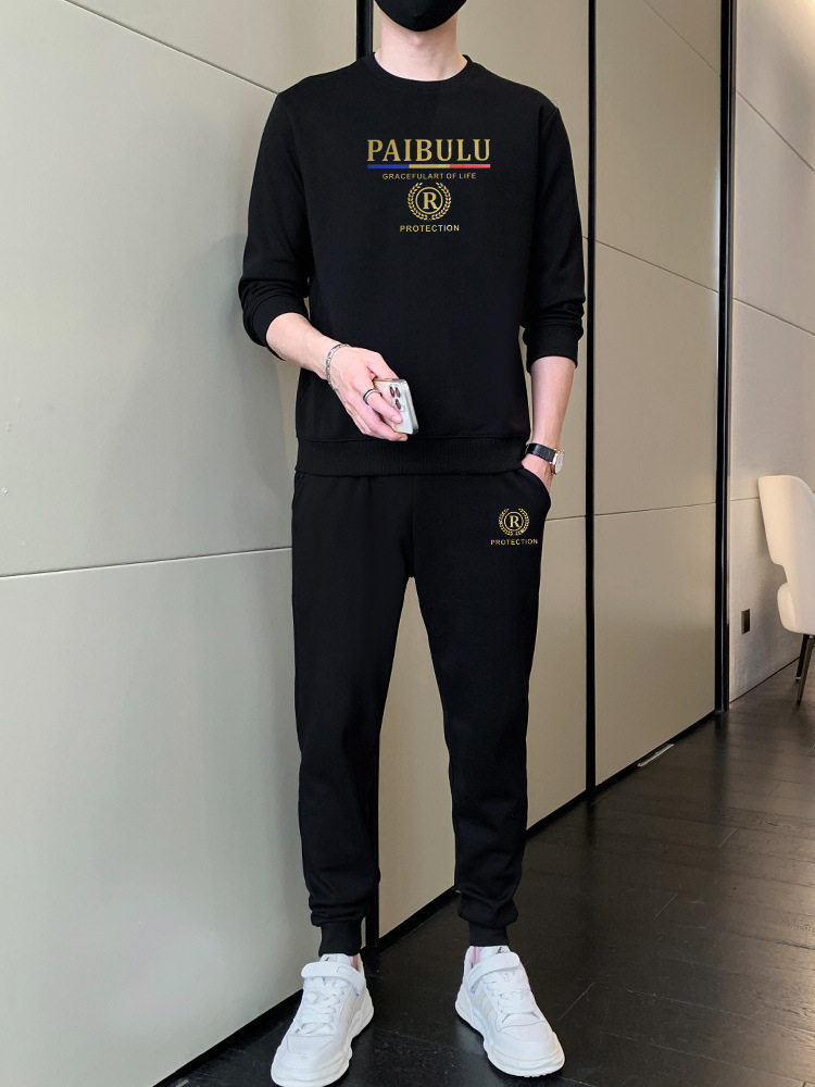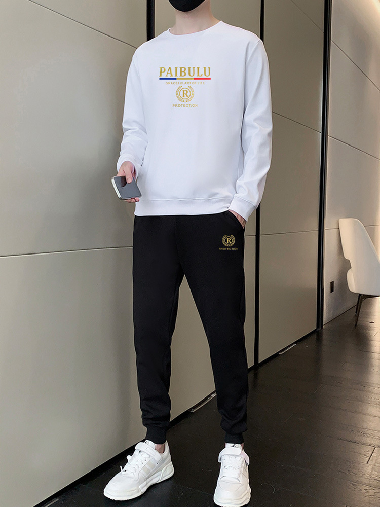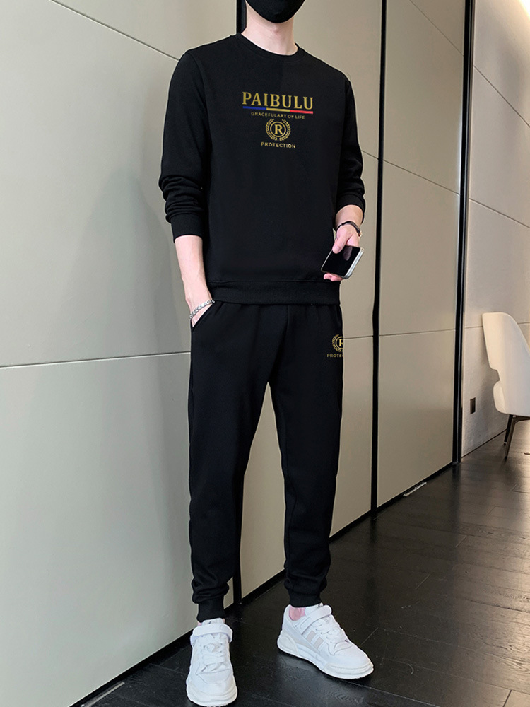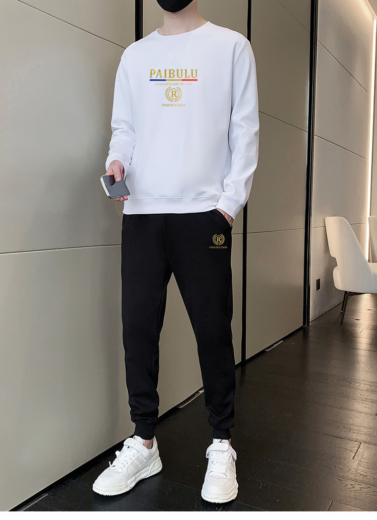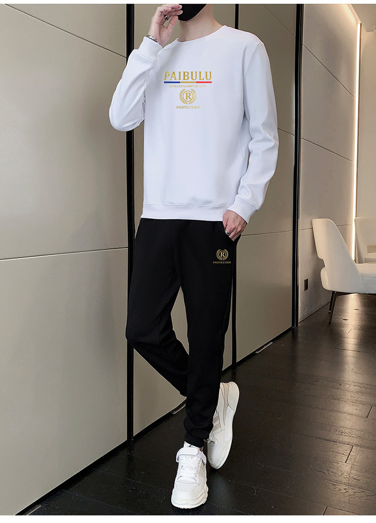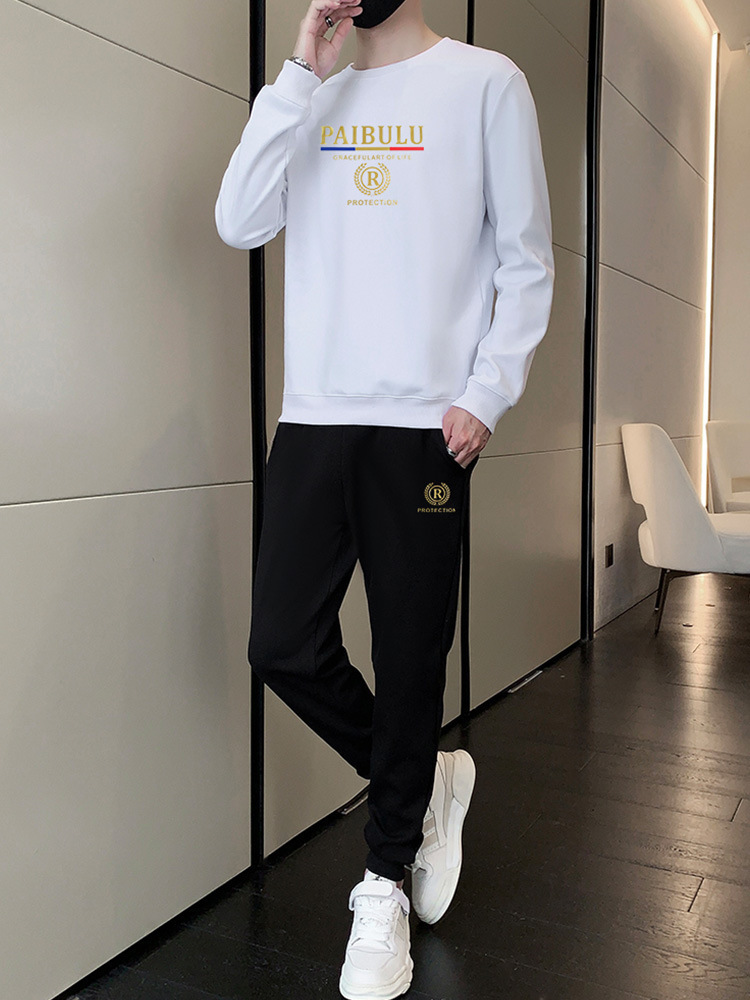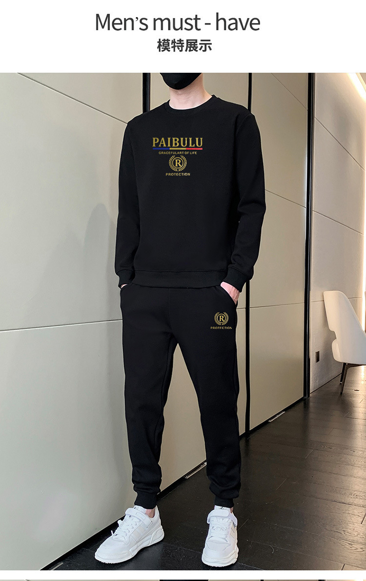 [공장 직접] 2024 가을 새로운 남성 레저 스포츠 세트 승무원 목 스웨터 바지 세트