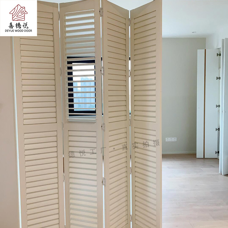 가벼운 고급 프랑스 접이식 루버 슬라이딩 원목 도어 연구실 발코니 파티션 도시 내 배송 소스 공장