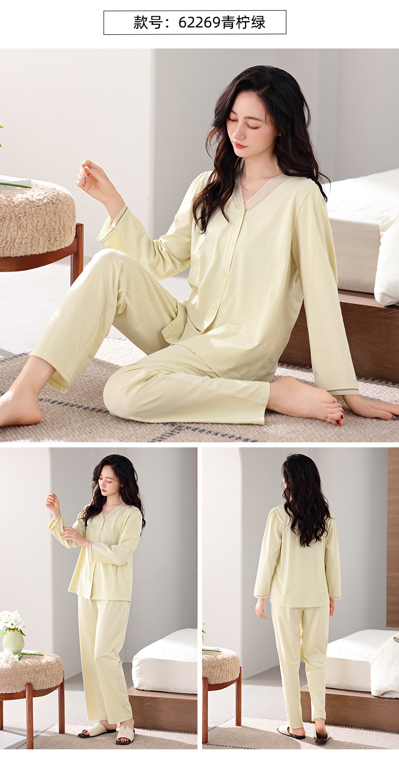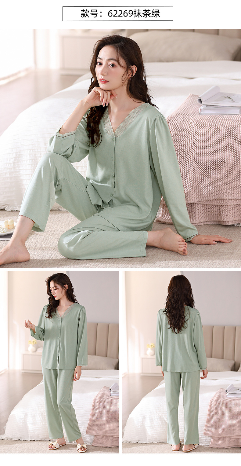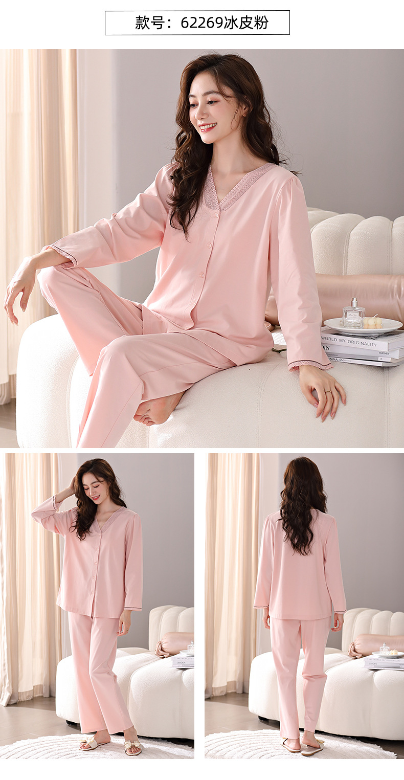 봄과 가을 새로운 도착 잠옷 여성용 긴팔 바지 얇은 카디건 플러스 사이즈 가을과 겨울 겉옷 캐주얼 홈 의류 세트스토어 가기