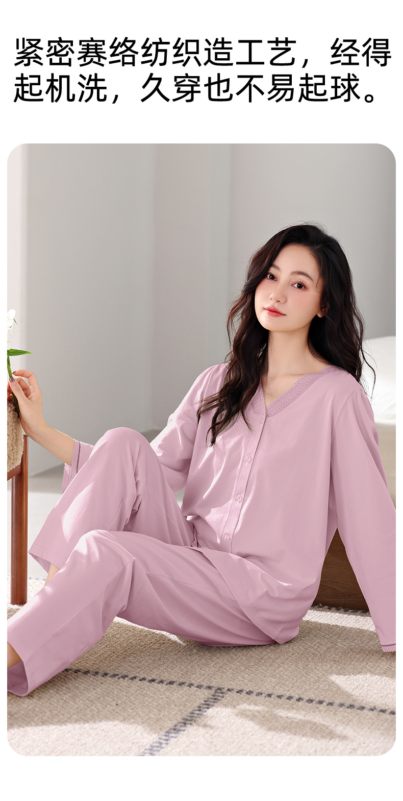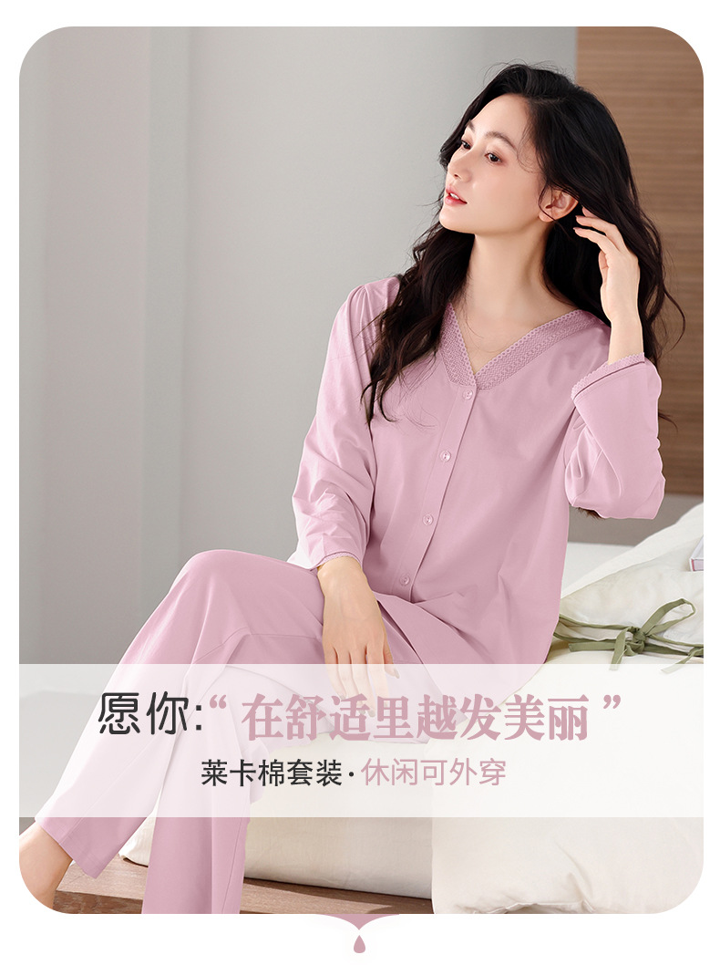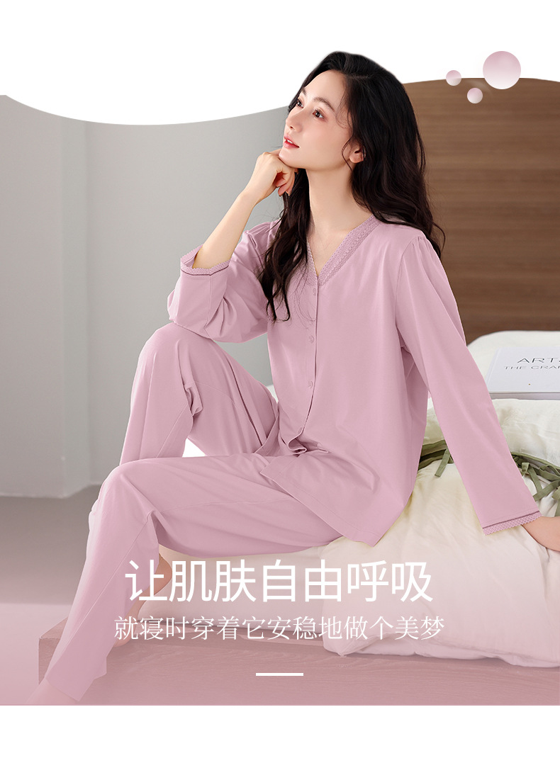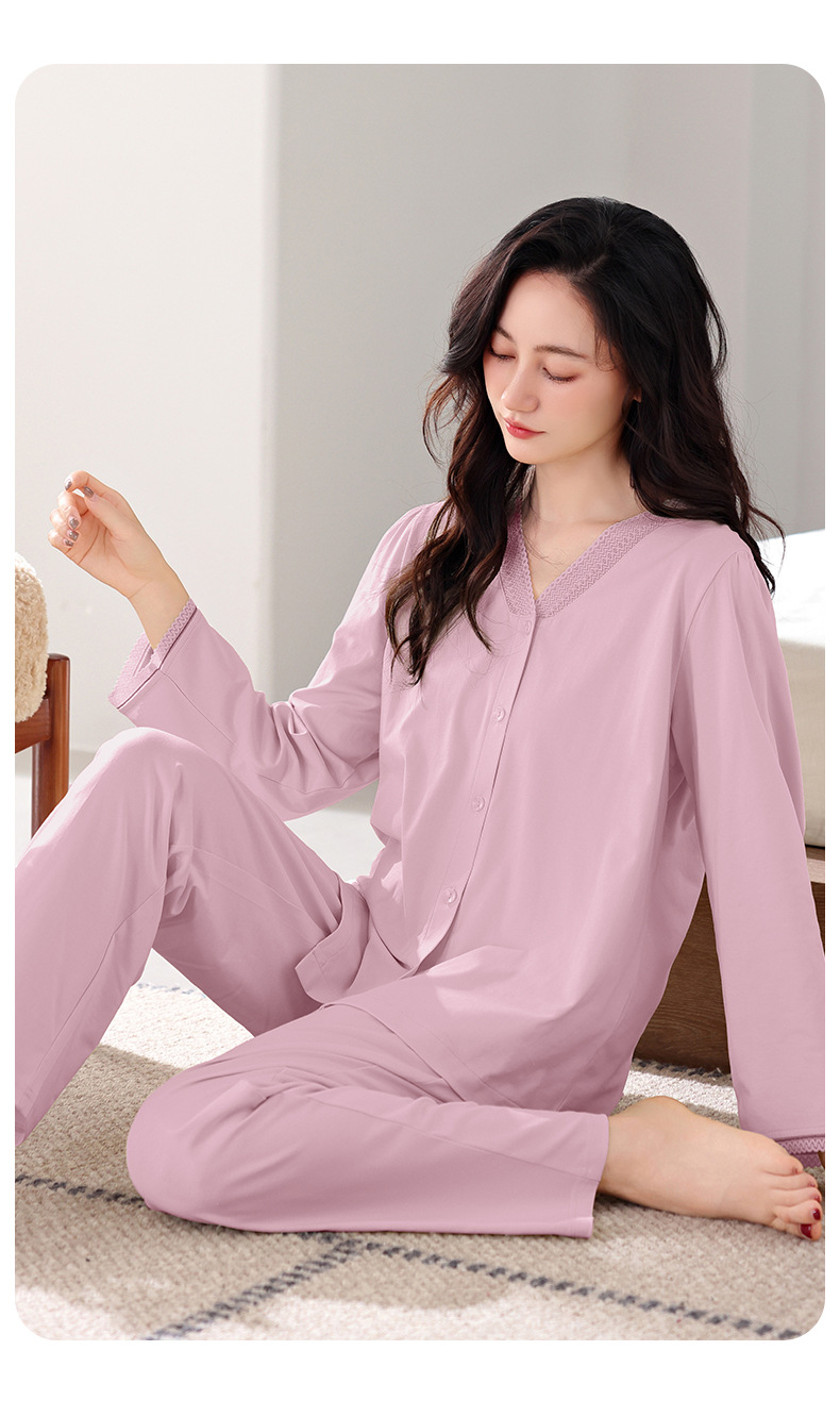 봄과 가을 새로운 도착 잠옷 여성용 긴팔 바지 얇은 카디건 플러스 사이즈 가을과 겨울 겉옷 캐주얼 홈 의류 세트스토어 가기